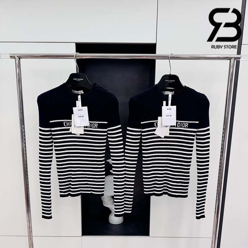 Áo Dioriviera Sweater Ecru And Navy Blue Cotton Knit With Signature Best Quality