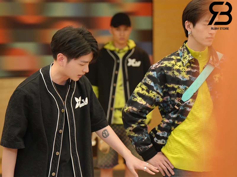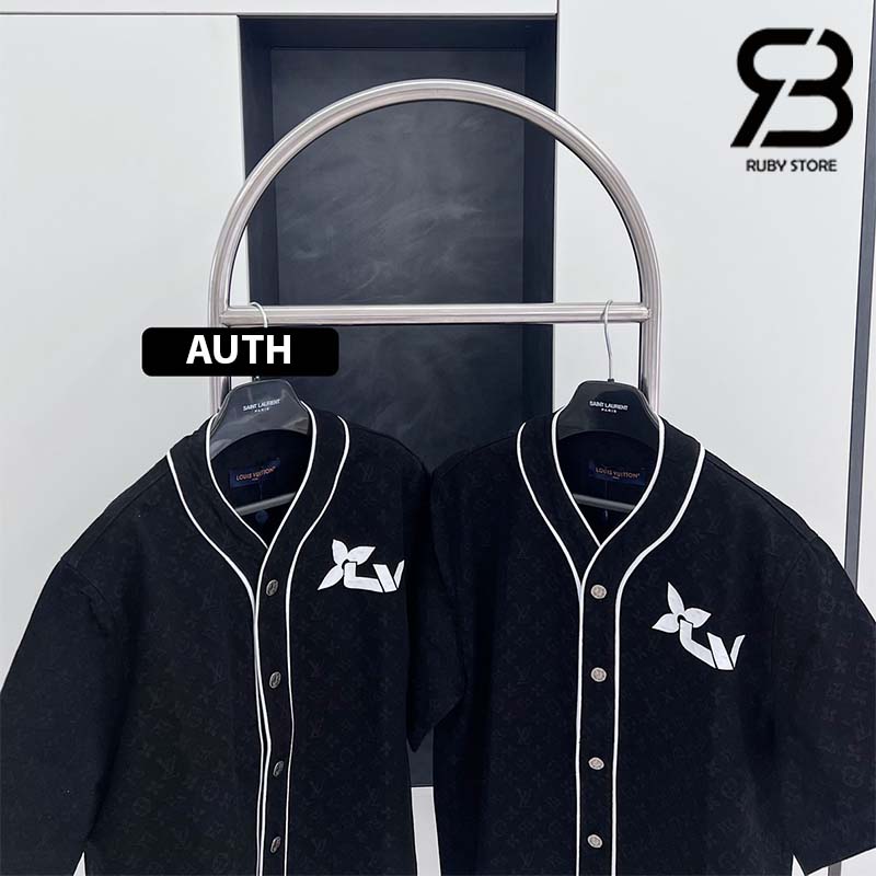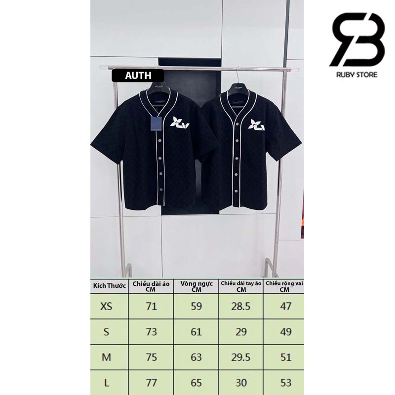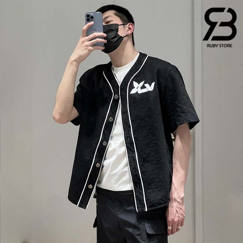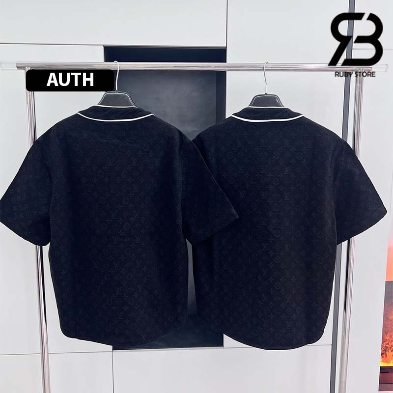 Mẫu áo Denim màu đen dáng thể thao có thể mặc như áo khoác ngoài, rất thoáng mát để mặc vào mùa Hè. Điểm nhấn của thiết kế này là cổ áo kiểu bóng chày có đường viền tương phản và logo LV được biến tấu như logo của các cuộc đua xe trên ngực trái. Áo có họa tiết Monogram được dệt bằng kỹ thuật Jacquard trên toàn bộ sản phẩm.