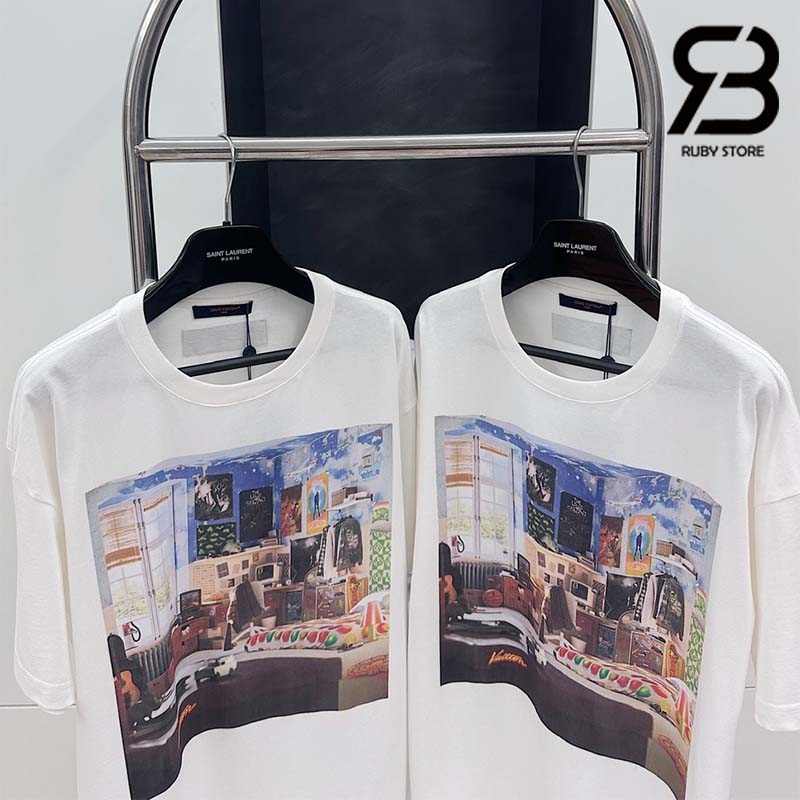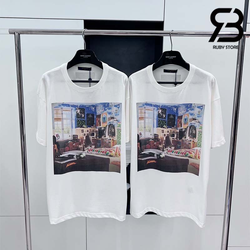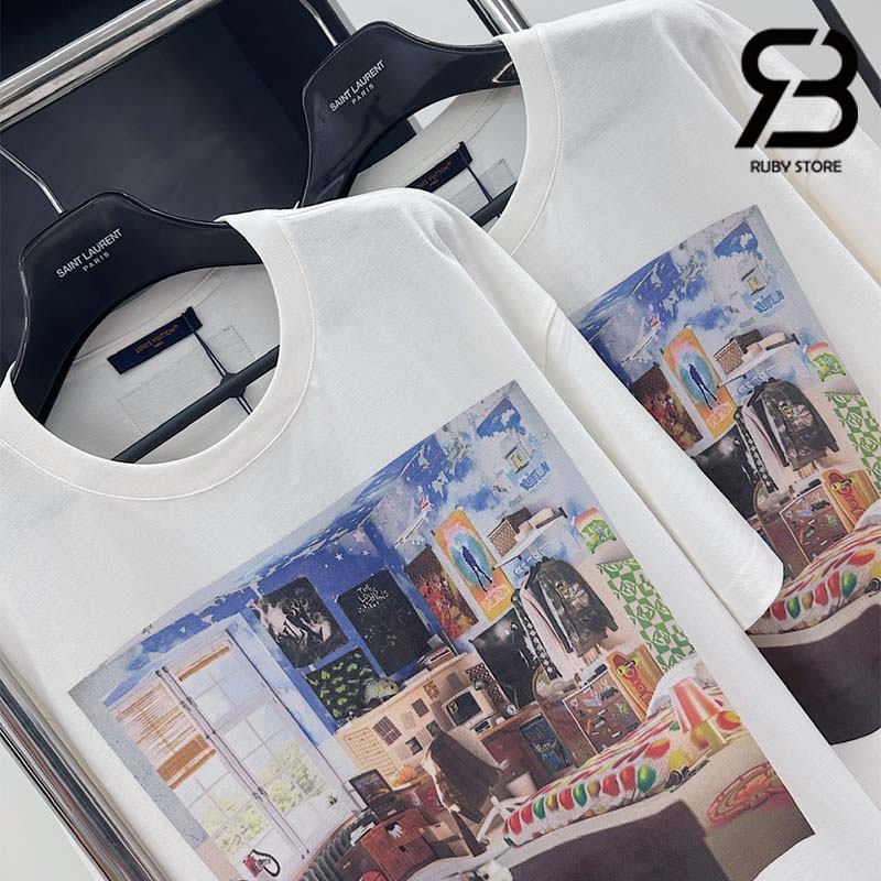 Được may từ vải Cotton Jersey mềm mại, áo thun trắng cổ điển nổi bật với chủ đề thuộc buổi trình diễn bộ sưu tập Thu-Đông 2023. Lấy cảm hứng về hành trình trưởng thành của một chàng trai trẻ, thiết kế gây ấn tượng với mô típ LV Teen Bedroom được in ở mặt trước. Sản phẩm có nhiều chi tiết đặc trưng và thú vị của các bộ sưu tập vừa ra mắt, mang đến nét phóng khoáng và rực rỡ cho bộ trang phục thường nhật.