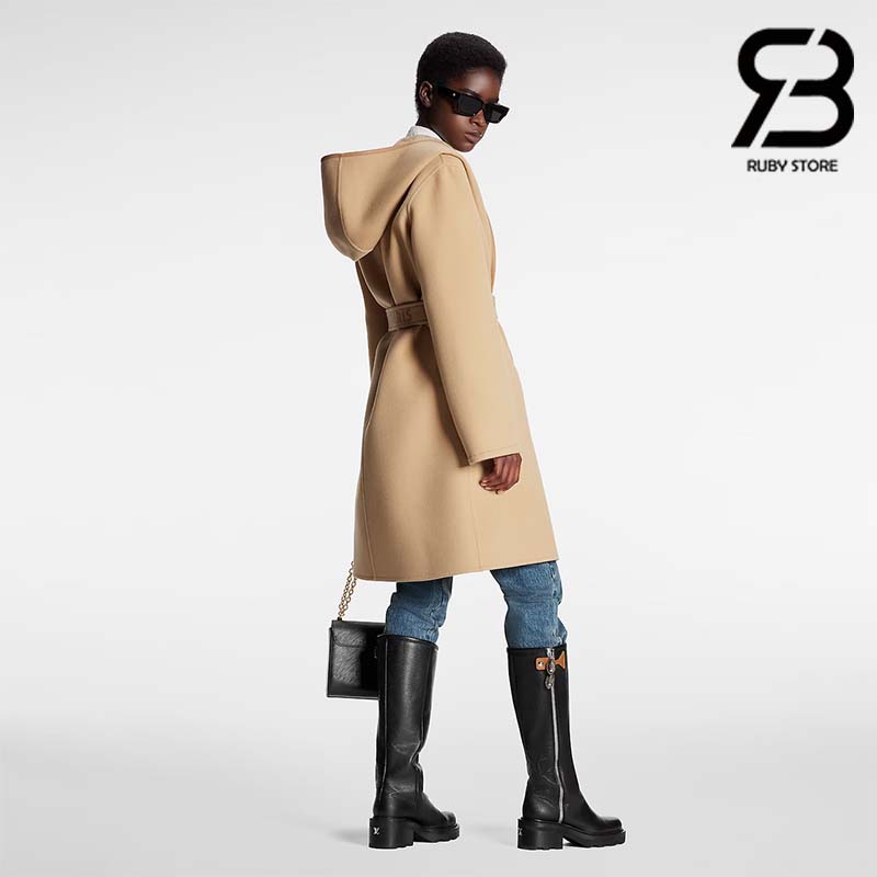 Hình bóng đặc trưng của Louis Vuitton: Chiếc áo khoác có mũ trùm đầu thanh lịch này được chế tác từ hỗn hợp len-lụa hai mặt sang trọng của House với đường cắt tối giản sang trọng, chi tiết với các nét đặc trưng cổ điển và hiện đại. Đường viền bằng da bóng bẩy bao quanh mặt trước, trong khi thắt lưng Louis Vuitton Paris làm nổi bật vòng eo nữ tính. Một phong cách thời tiết lạnh vượt thời gian.