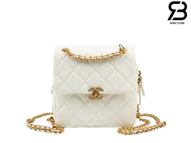 Thông tin mẫu Ba Lô Chanel 22 Melody Backpack Màu Trắng Da Caviar GHW 20CM