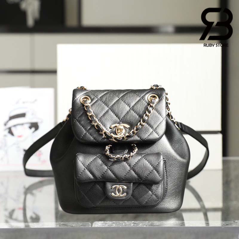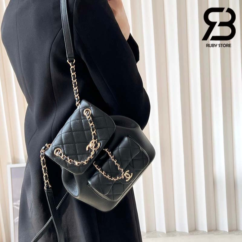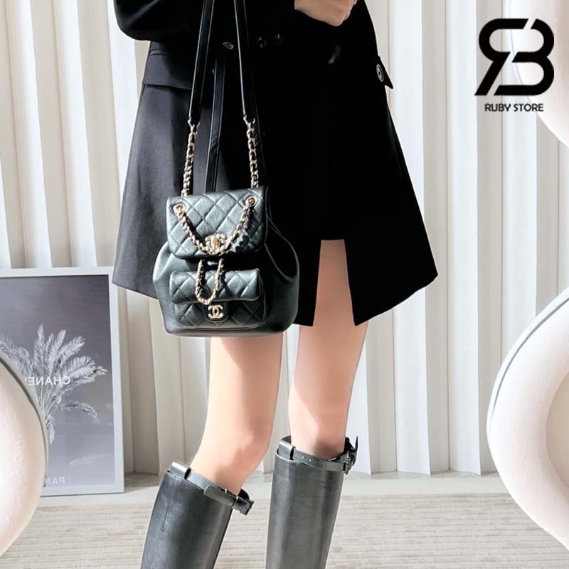 Tham khảo ảnh ba lô Chanel 23C Small Duma Blackpack Màu Đen Calfskin GHW 18CM Best Quality