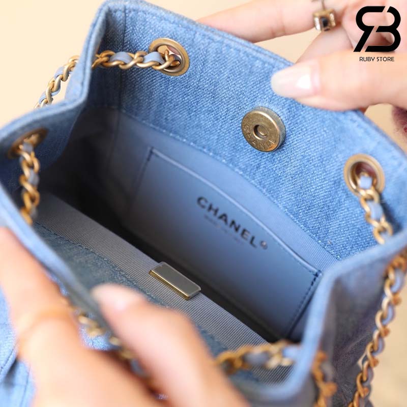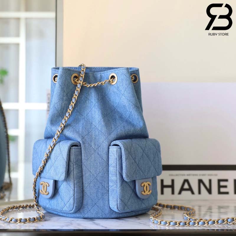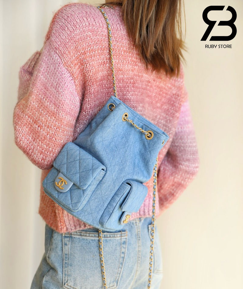 Ba lô Chanel 25C Pocket Size 24CM Blue Denim Lambskin Xanh Dương Best Quality