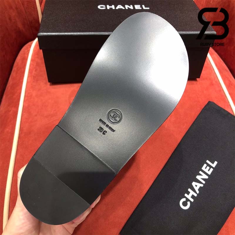 Tham khảo ảnh mẫu Dép Chanel 21C Black Caviar Round Logo Mule Silde Strap Dad Sandal Best Quality