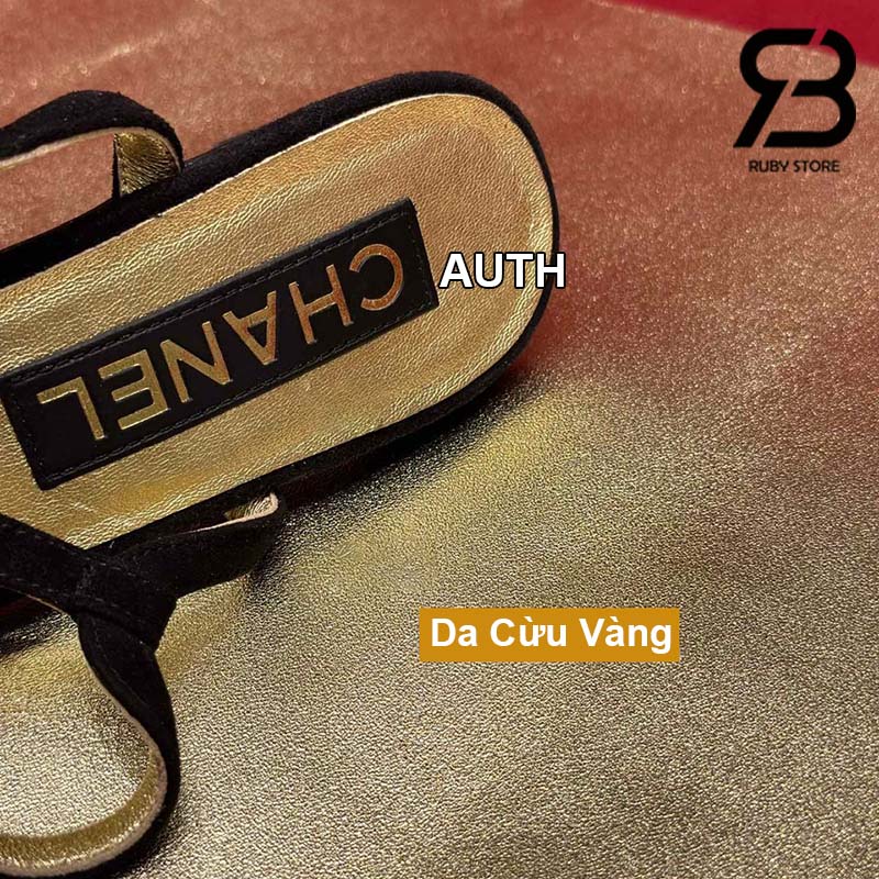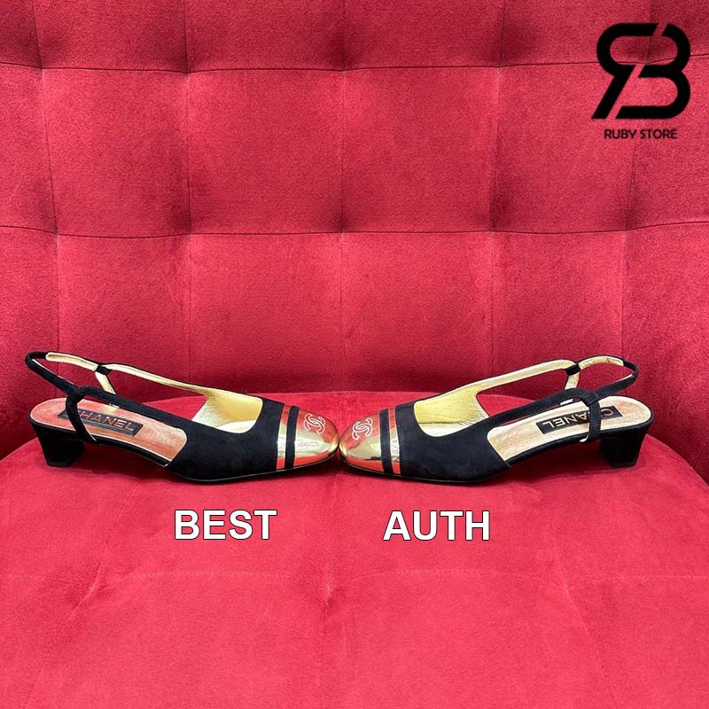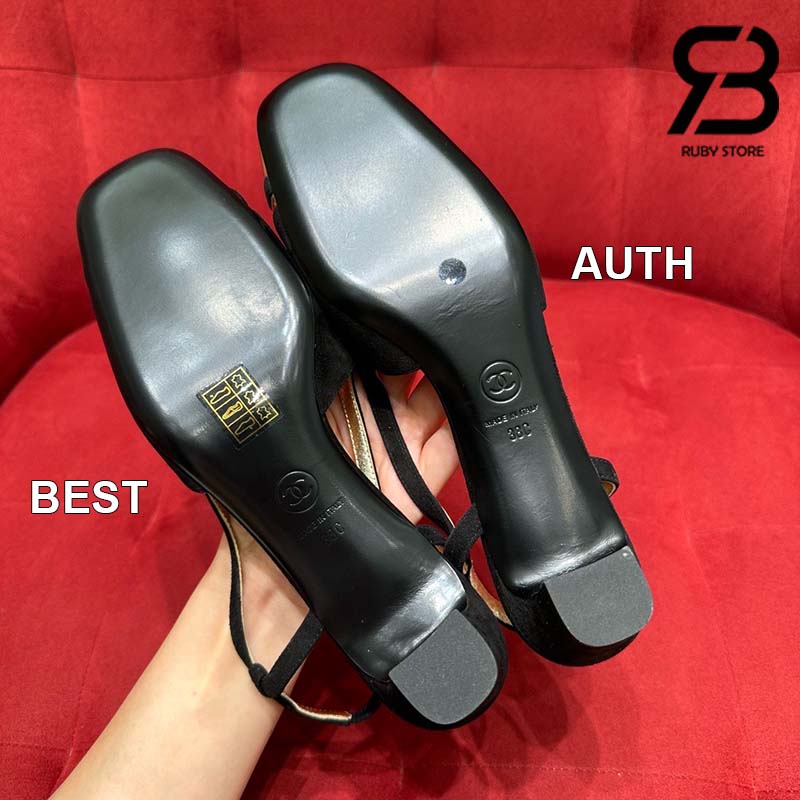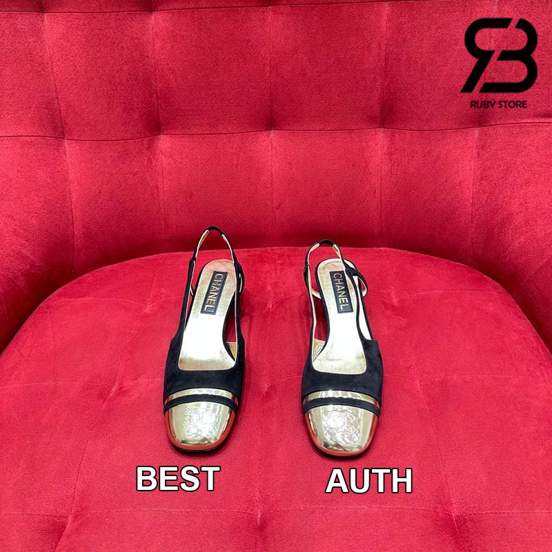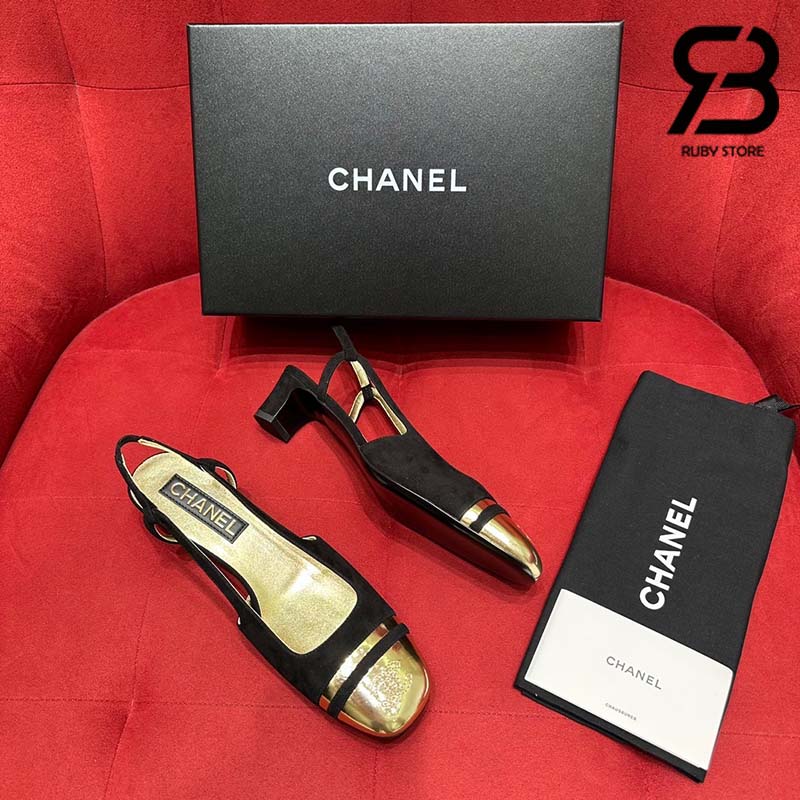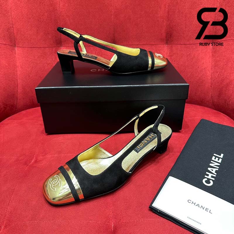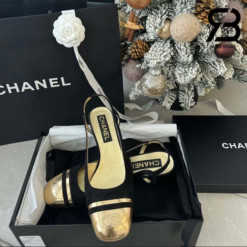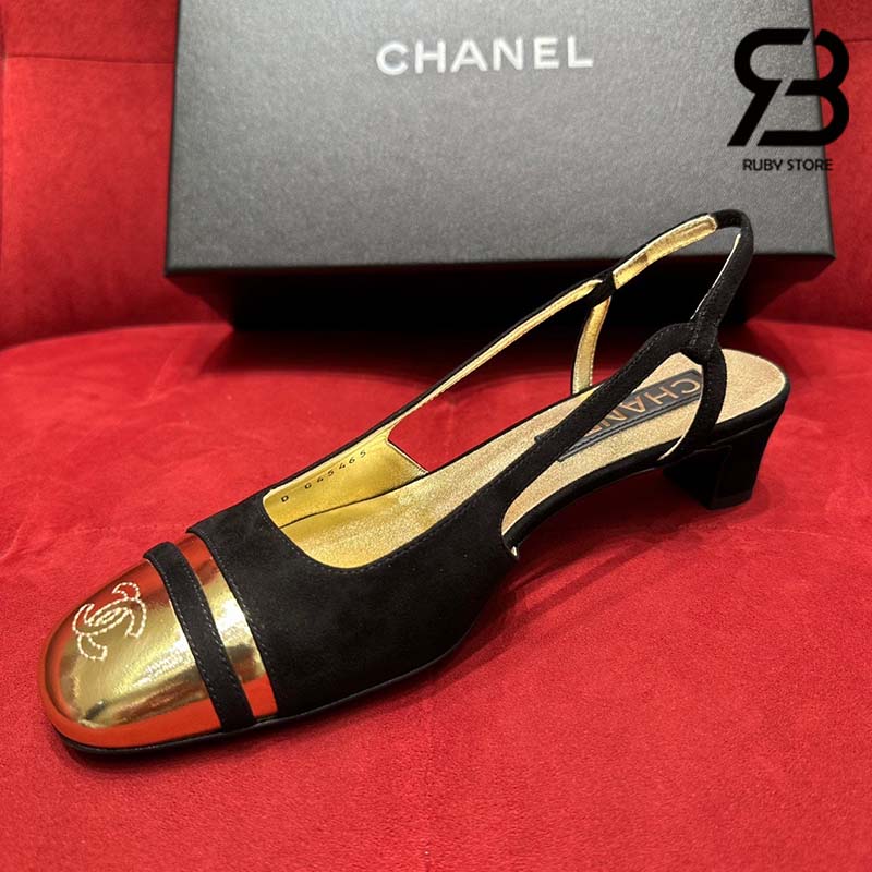 Giày Chanel 24C Slingback Màu Đen Gold CC Logo Best Quality