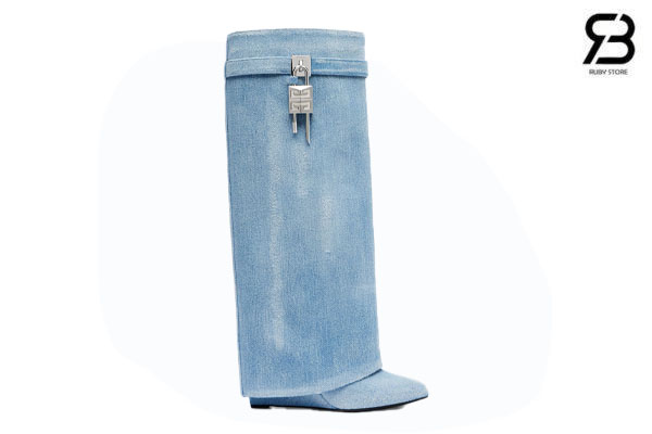 Giày Givenchy Shark Lock Biker Xanh Denim Best Quality