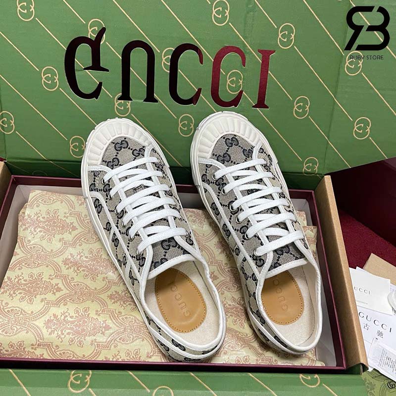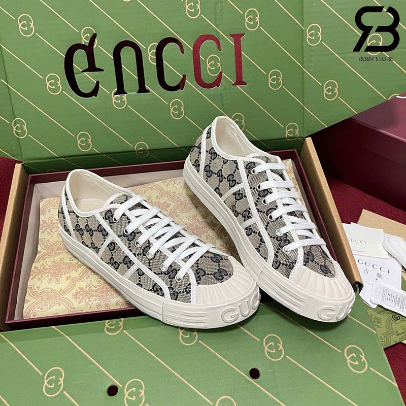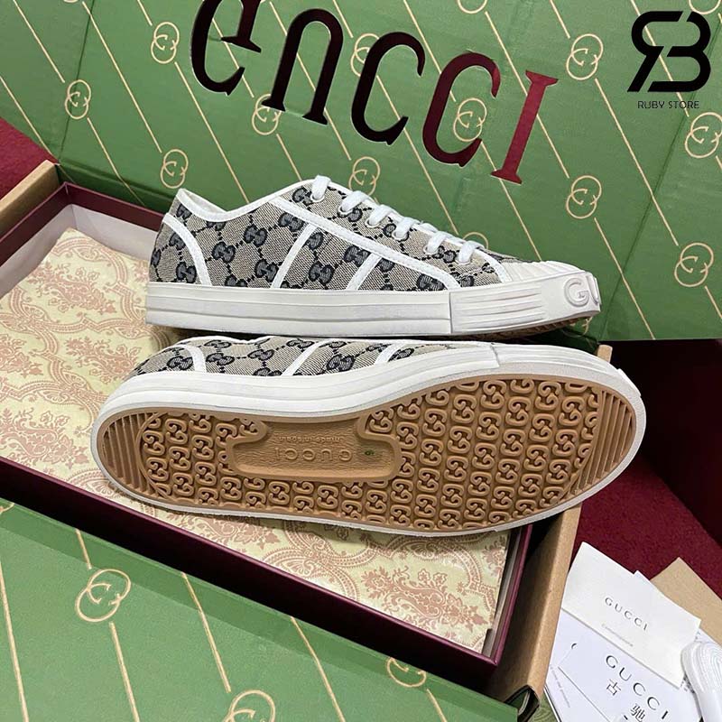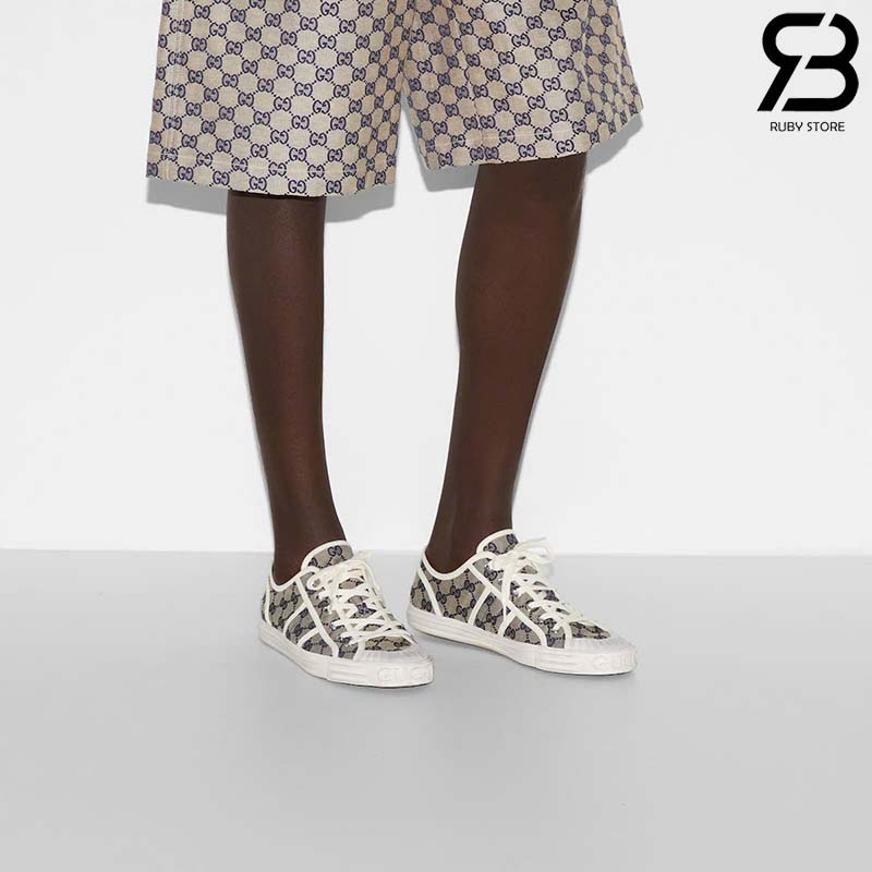 Giày Gucci Low Top GG Sneaker Beige Blue Canvas Xanh Dương Best Quality