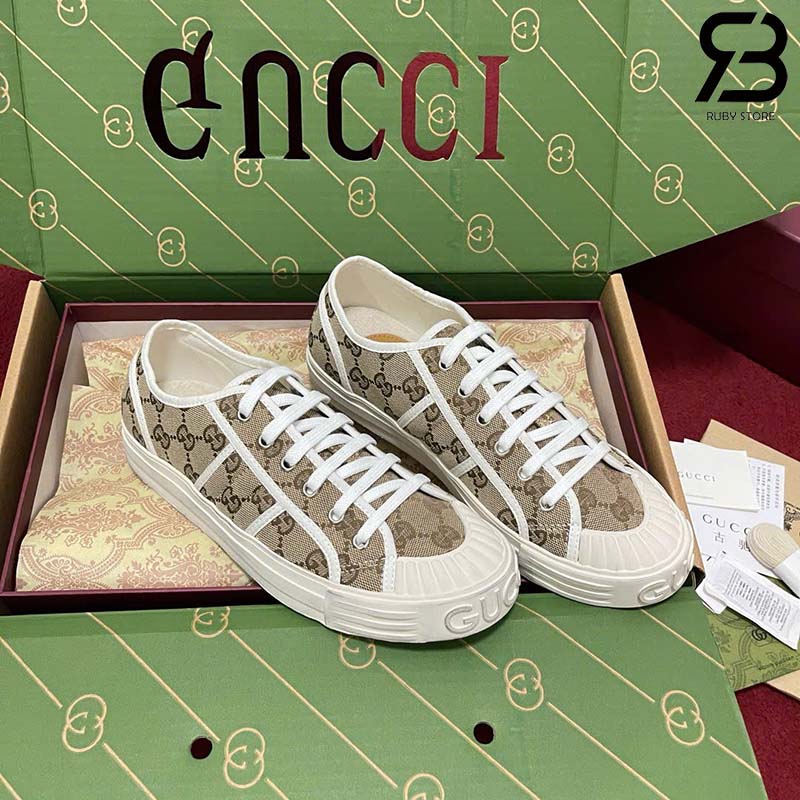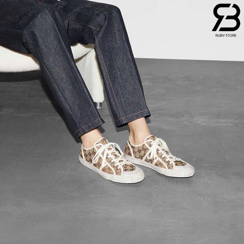 Giày Gucci Low Top GG Sneaker Beige Ebony Canvas Nâu Best Quality