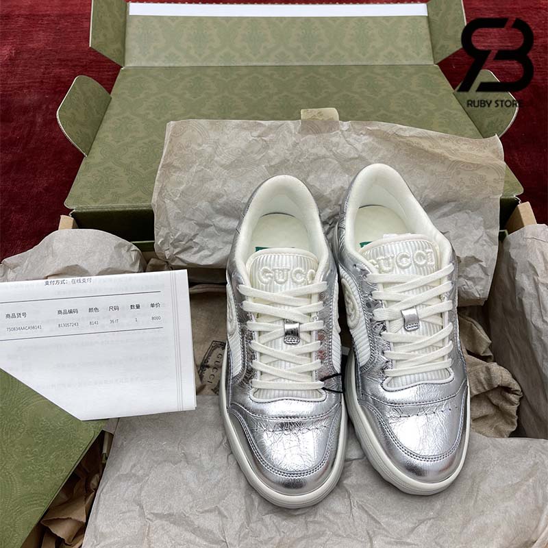 Giày Gucci MAC80 Off-White Metallic Silver Siêu Cấp