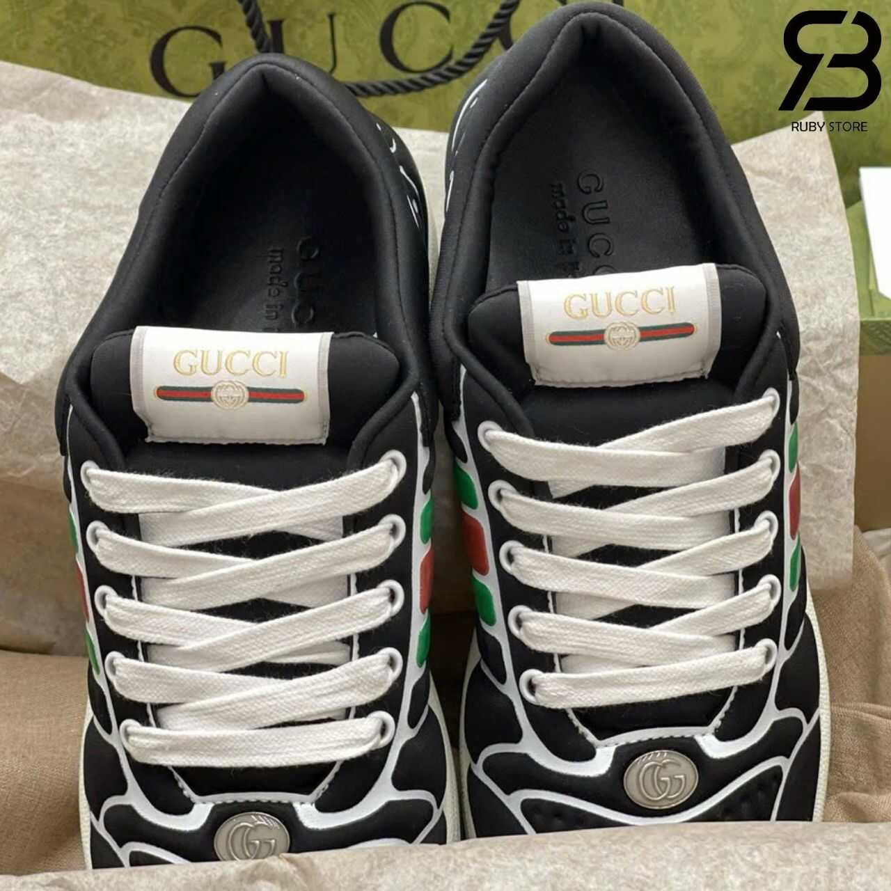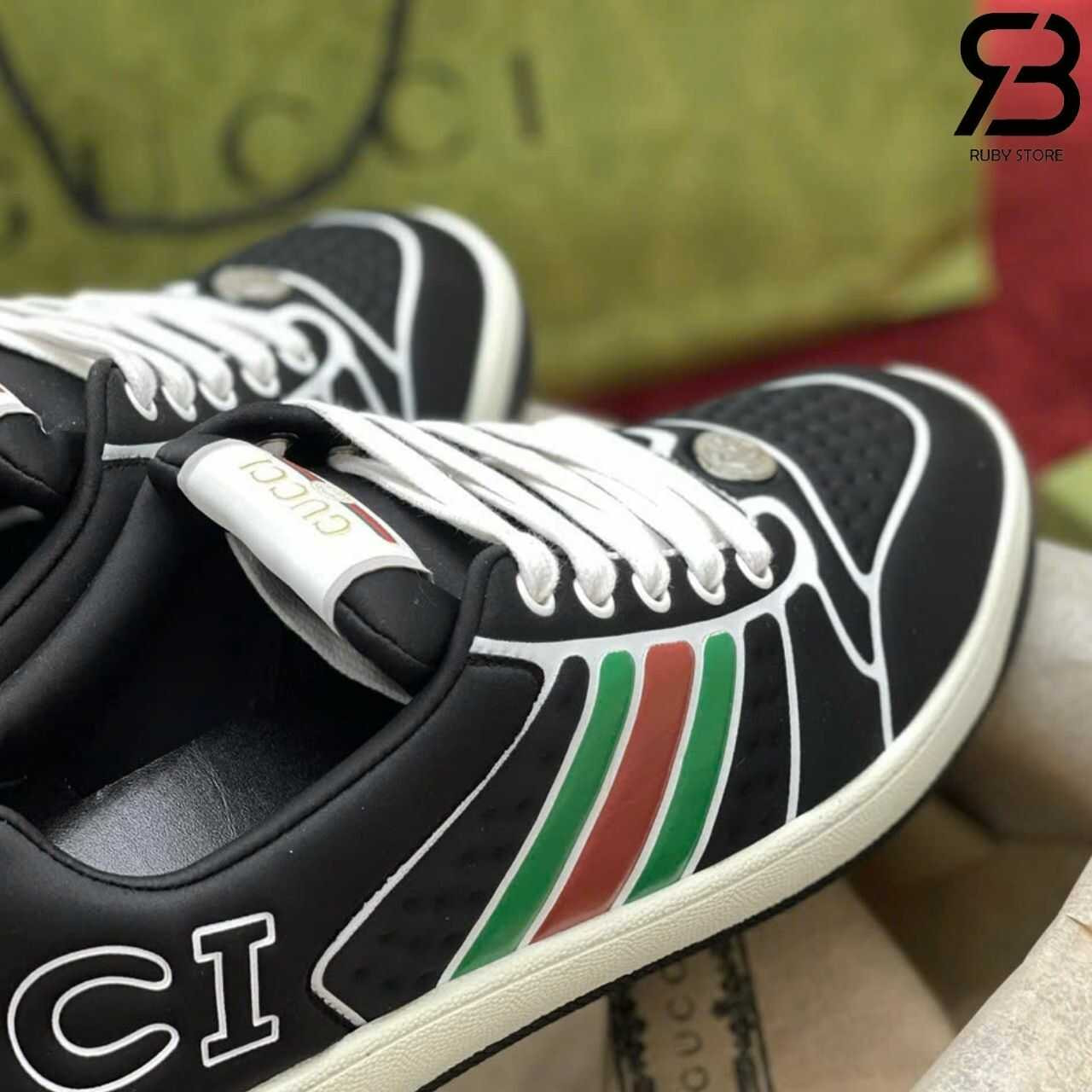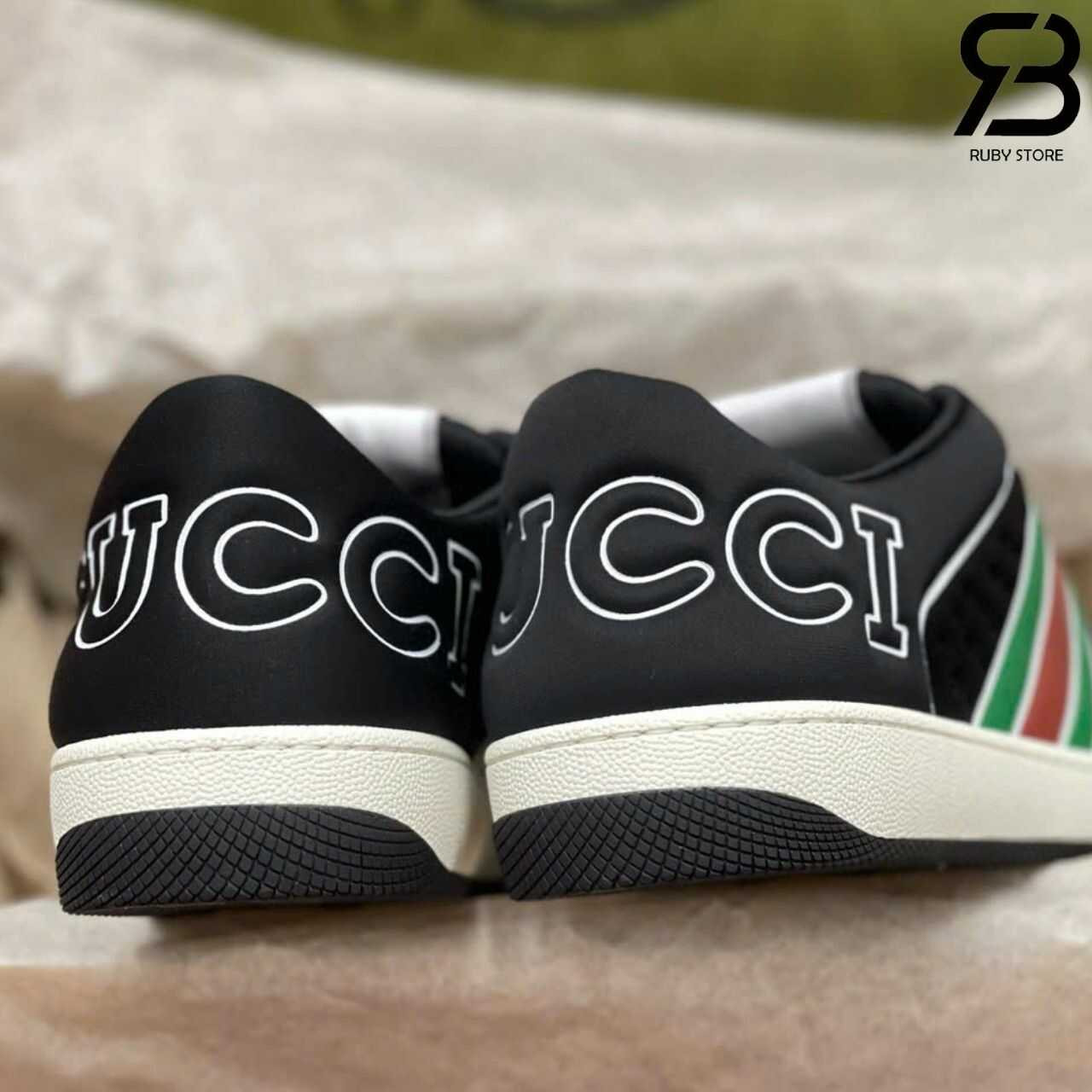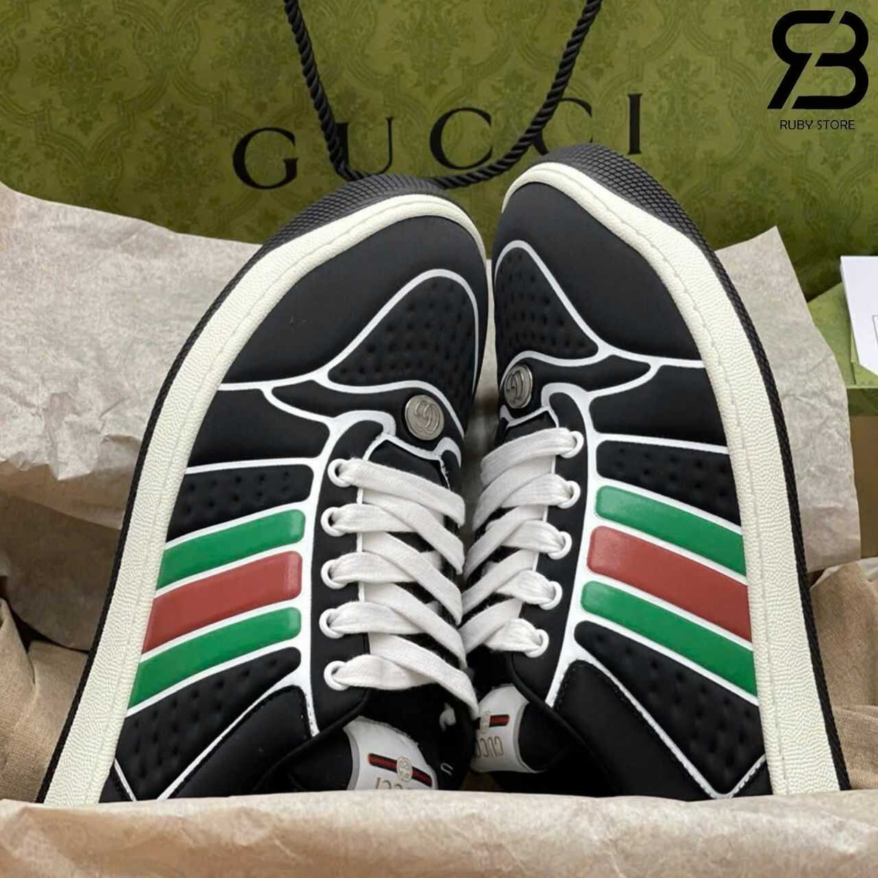 Hình ảnh thực tế đôi giày Gucci Screener đen viền trắng Best Quality