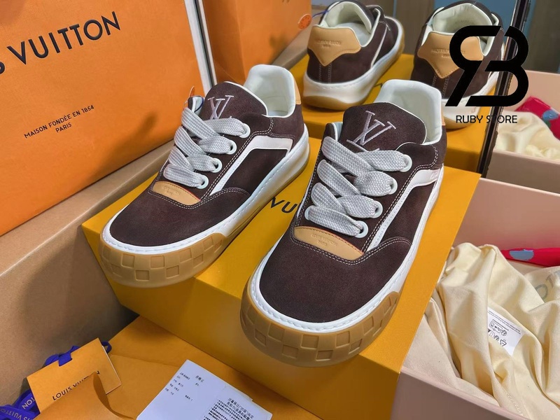 Giày LV Pharrell Williams Tilted Sneaker Brown Nâu