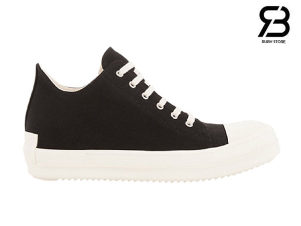 Hình ảnh thực tế đôi giày Rick Owens DRKSHDW đen cổ thấp vải Canvas Best Quality