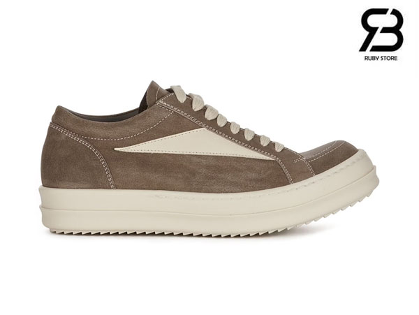 Hình ảnh thực tế đôi giày Rick Owens nâu trắng cổ thấp Best Quality