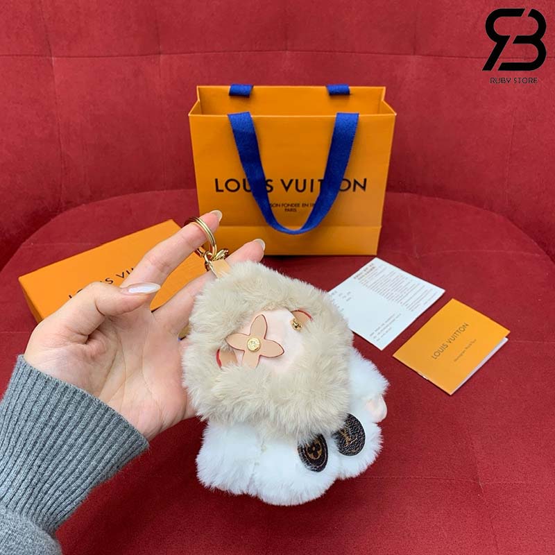 Móc Khóa Treo Túi Linh Vật LV My Vivienne Lông Trắng Xám Best Quality
