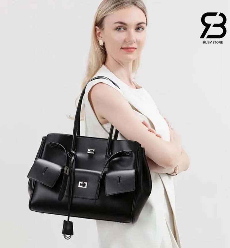Túi Balenciaga Bel Air Small Carry All Bag Size 30 Black Đen Da Calfskin SHW Best Ý