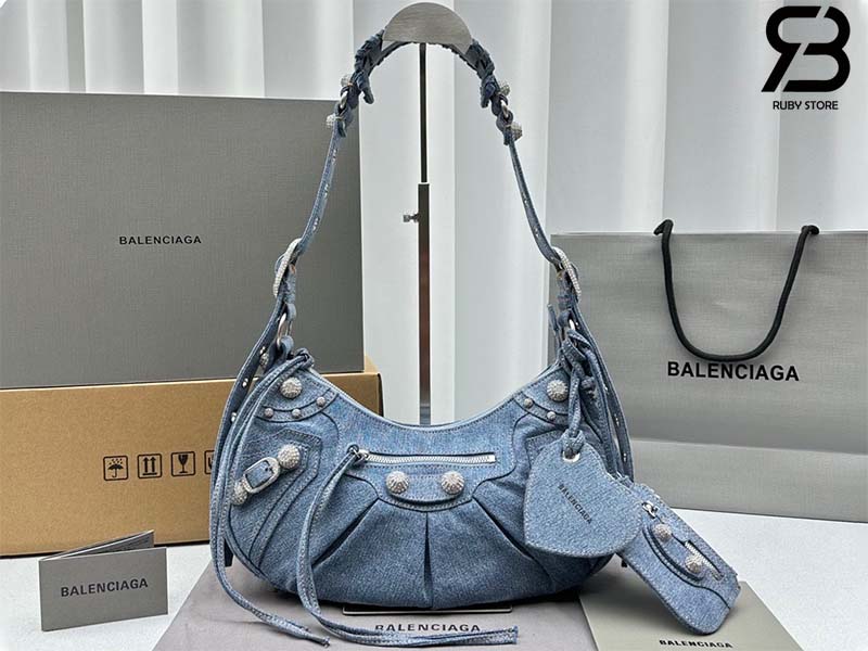 Túi Balenciaga Le Cagole Small Shoulder Bag Xanh Denim Rihnestone 33CM Best Quality
