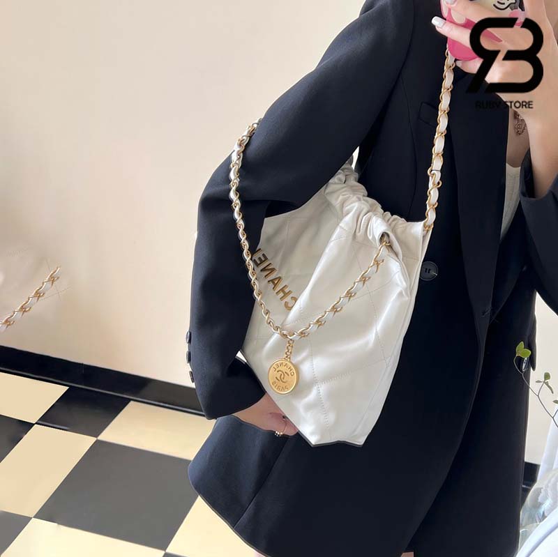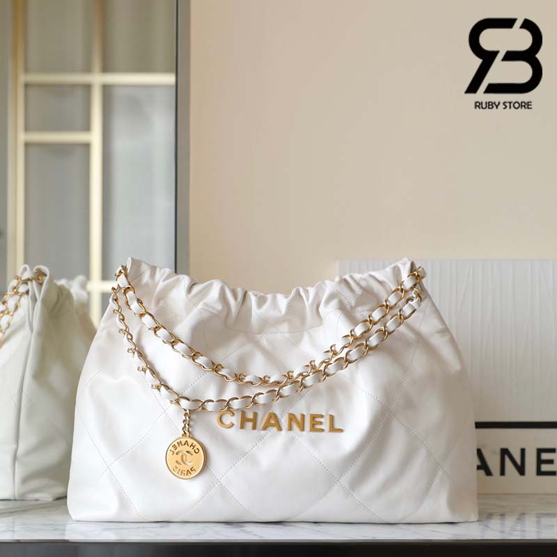 Túi Chanel 22 24C Shopping Bag Trắng Da Bê Bóng GHW 45CM Best Quality