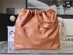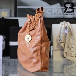 Túi Chanel 22 Handbag Light Brown Gold Nâu Logo Vàng Da Bê 38CM Best Quality
