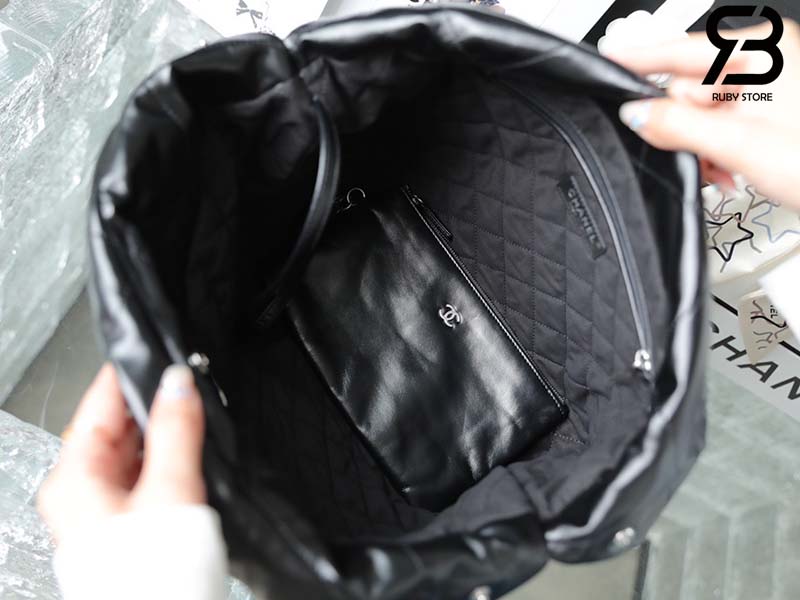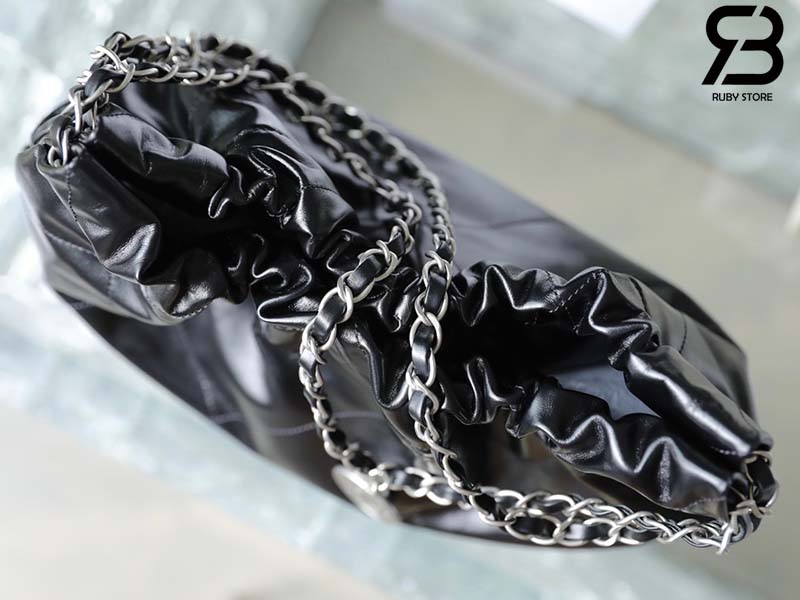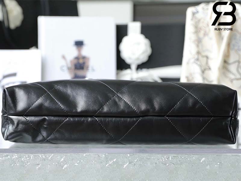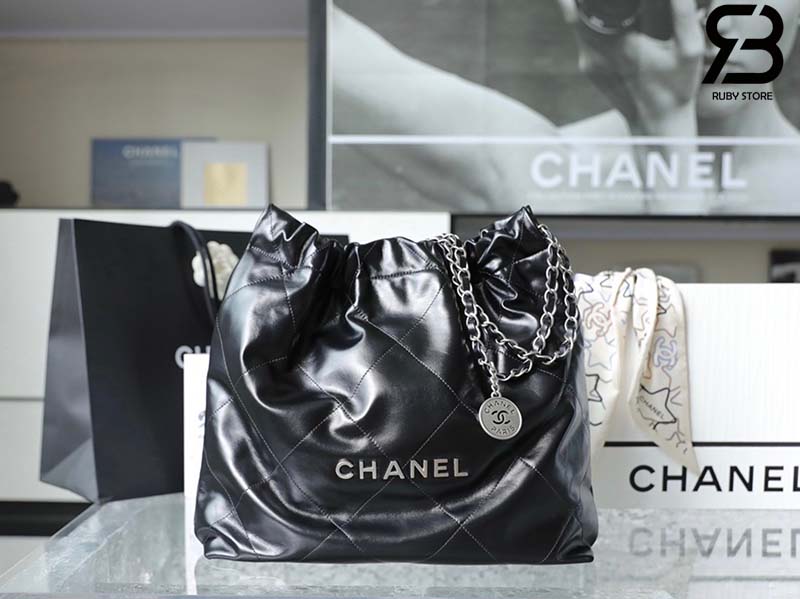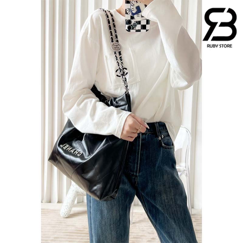 Túi Chanel 22 Medium Handbag Đen Logo Bạc Da Bê SHW 38CM Best Quality