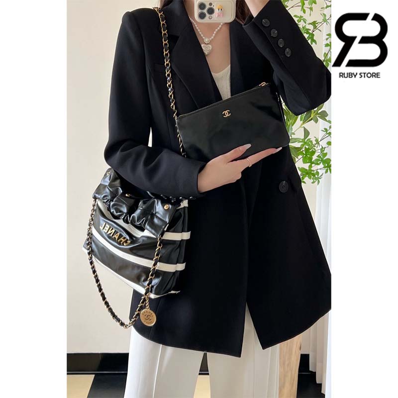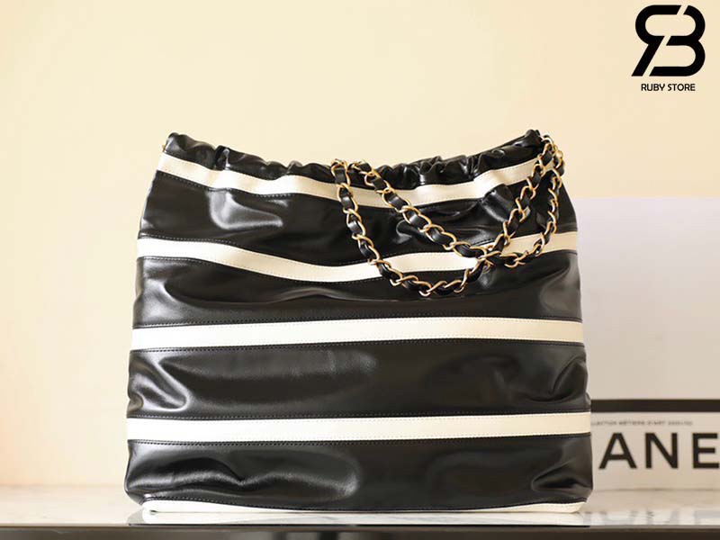 Tham khảo mẫu túi Chanel 22 Small Shopping Handbag Đen & Trắng Da Bê Bóng 34CM Best Quality