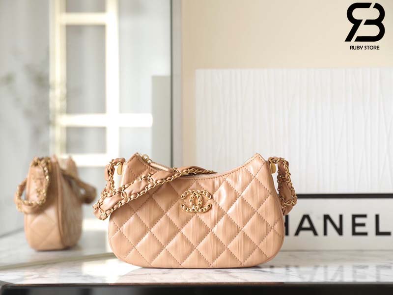 Túi Chanel 23K 19 Logo Mini Hobo Bag Màu Nude Beige Calfskin 20CM Best Quality