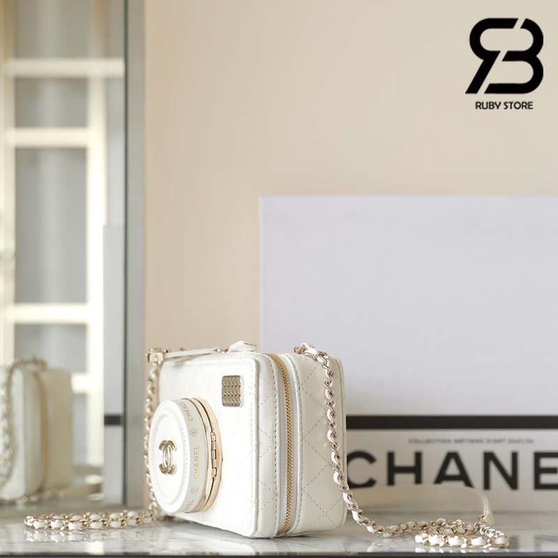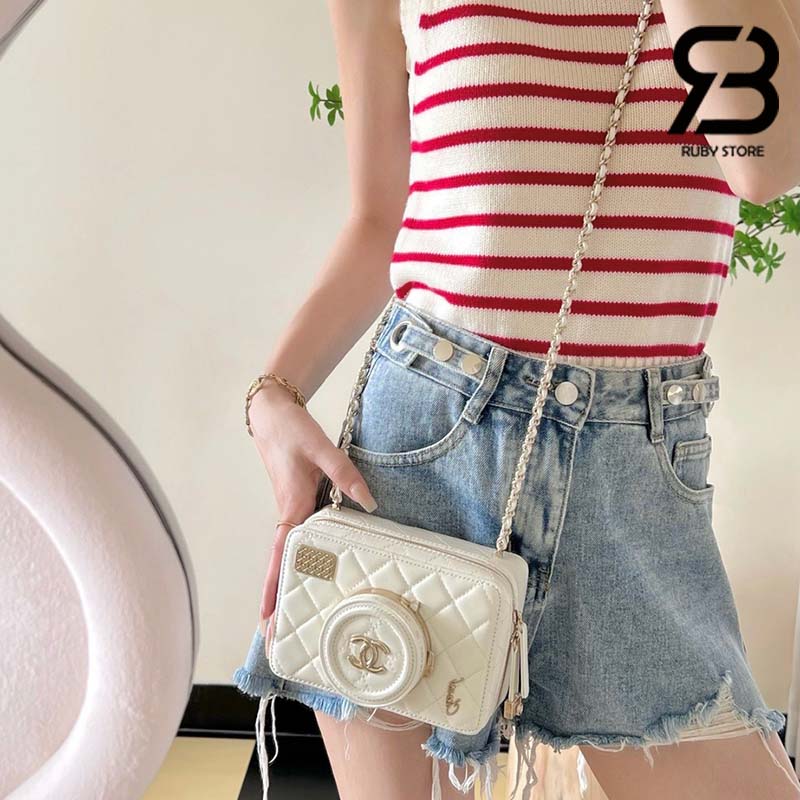 Tham khảo ảnh mẫu túi Chanel 24 Camera Bag Màu Trắng Da Lambskin 16CM Best Quality