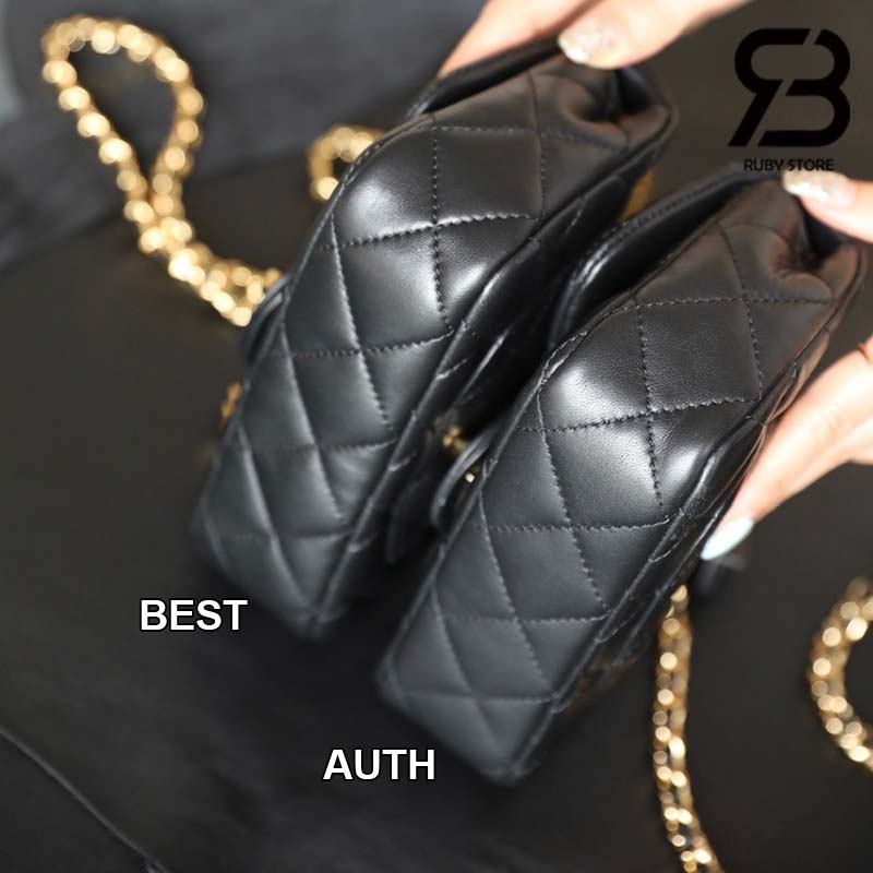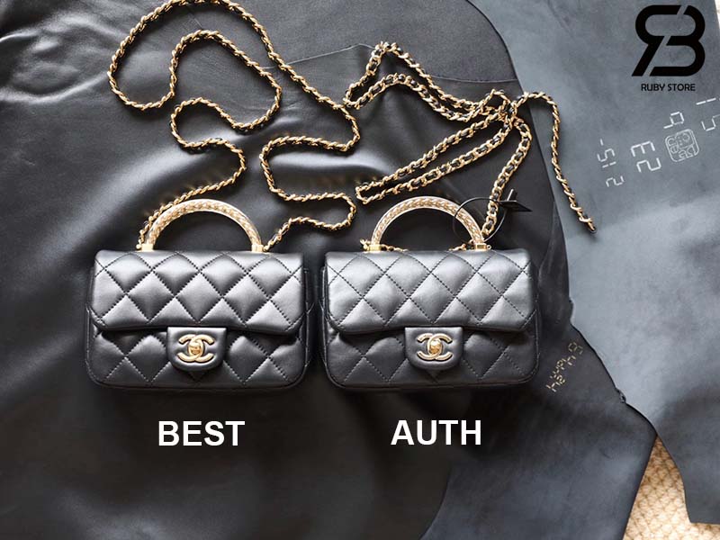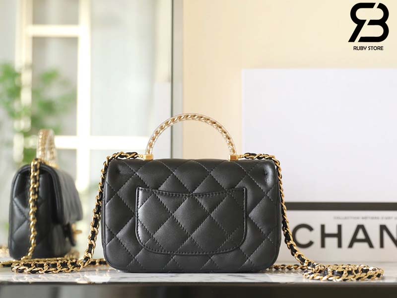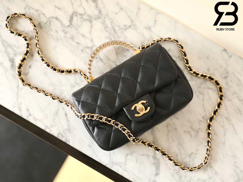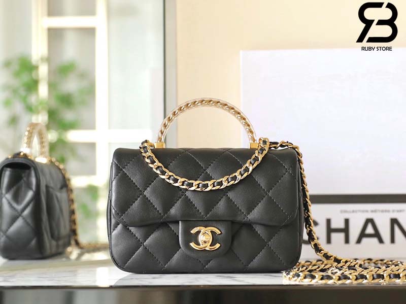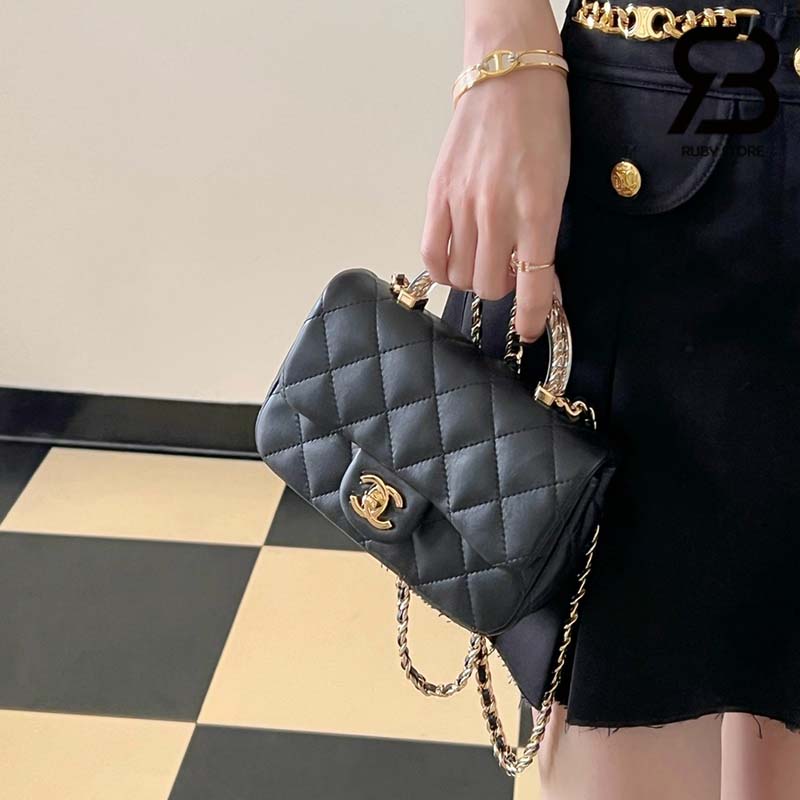 Tham Khảo túi Chanel 24SS Mini Flap Bag Top Handle Màu Đen Da Cừu GHW Best Quality