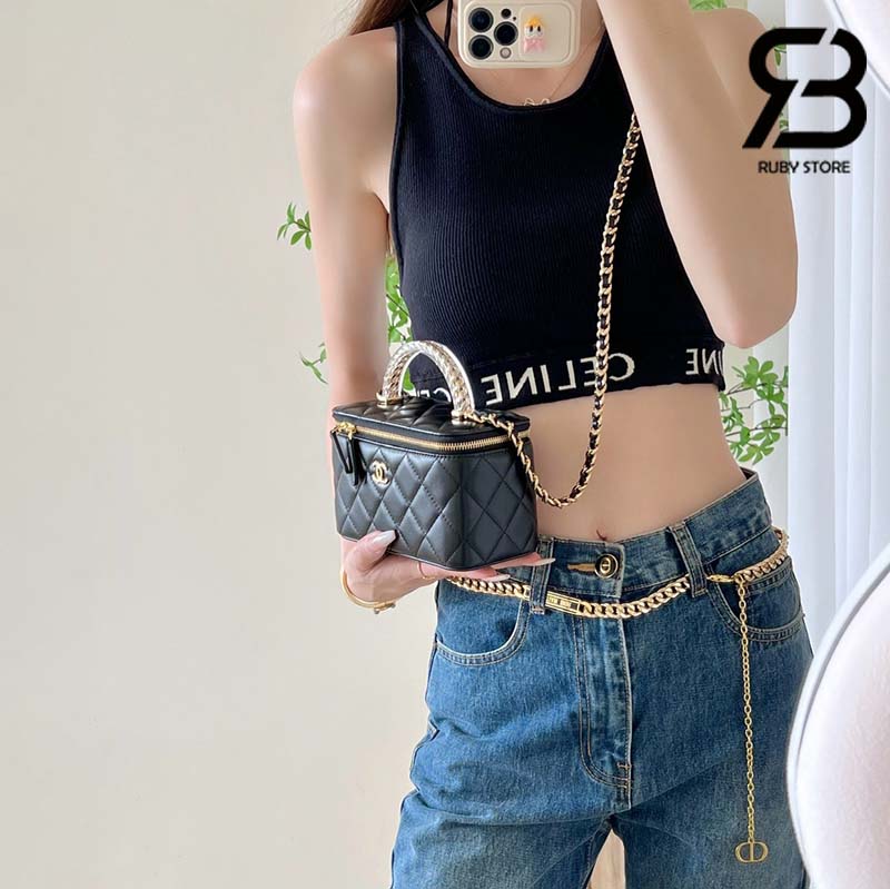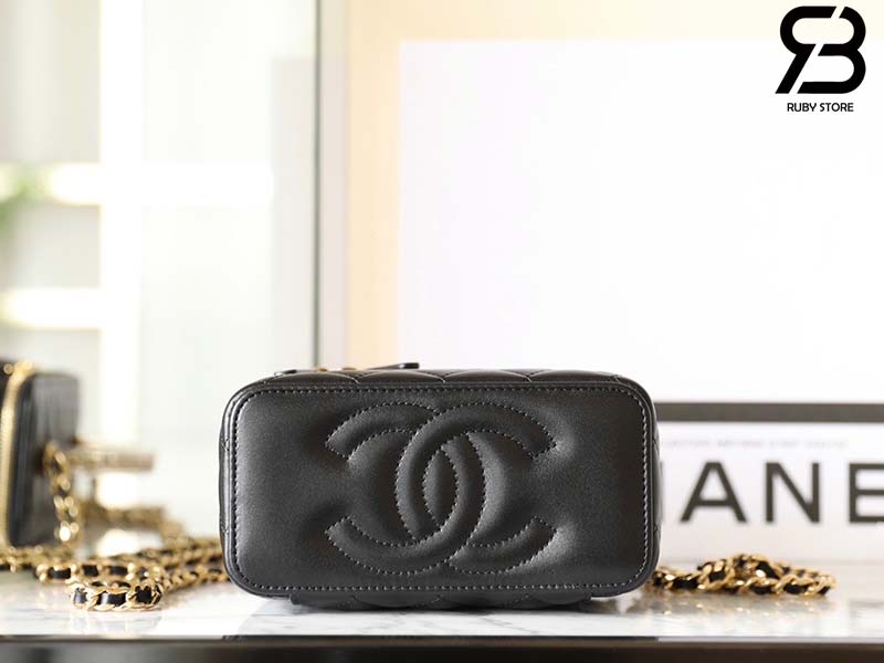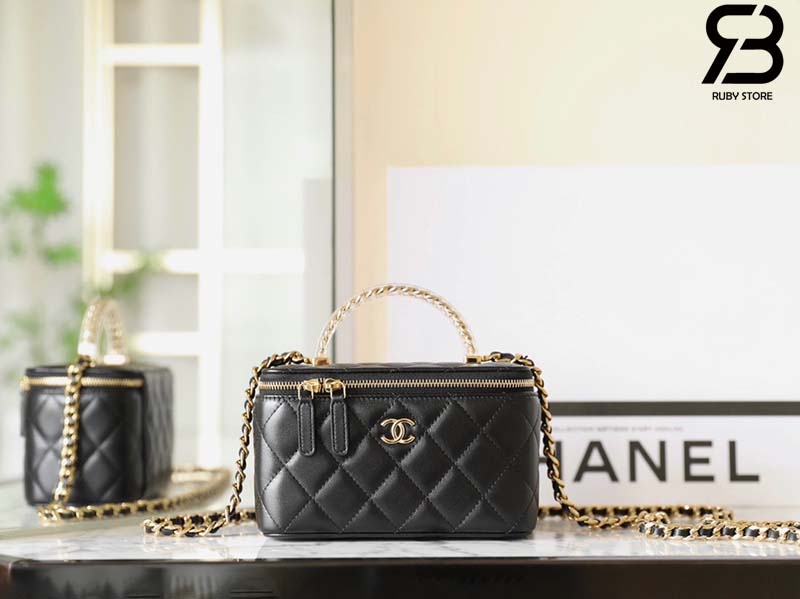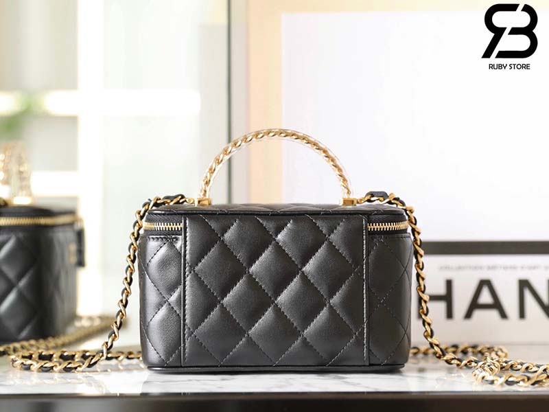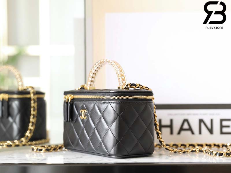 Tham Khảo túi Chanel Mini Vanity Resin Handle Màu Đen Da Cừu GHW 16CM Best Quality