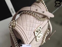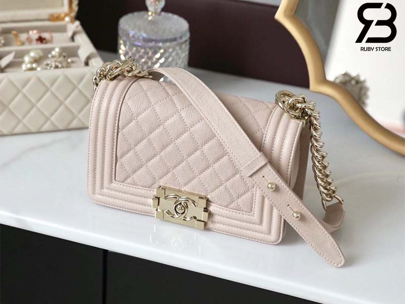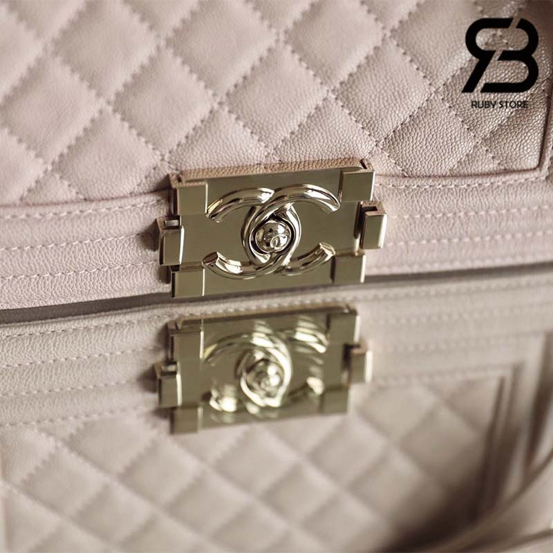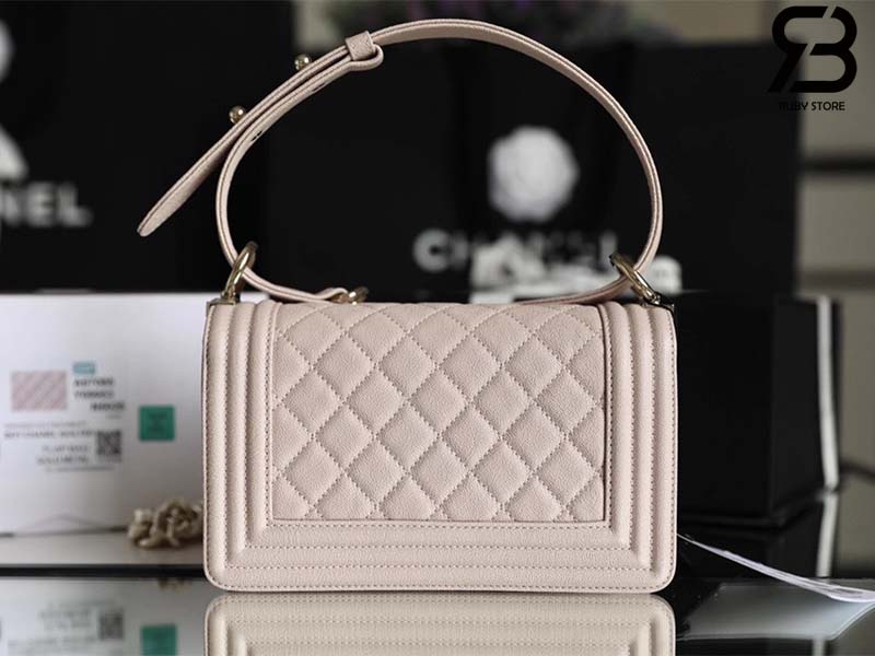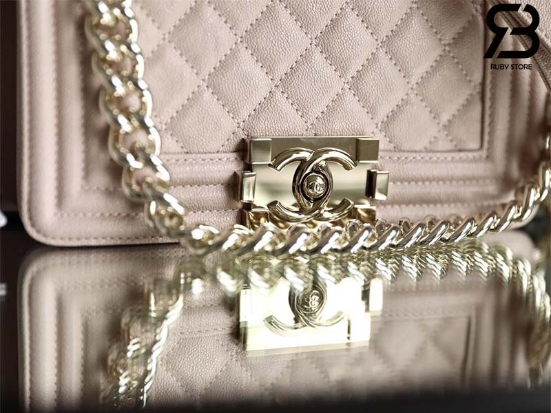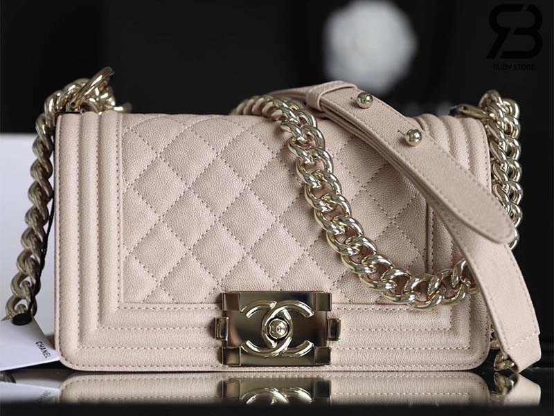 Túi Chanel Boy Small Màu Be Nhạt Da Caviar Khóa Vàng Best Quality