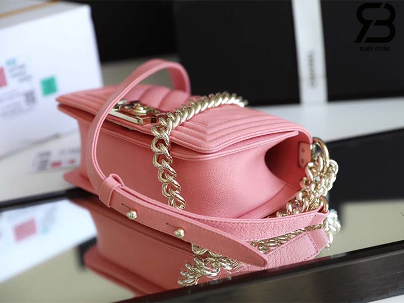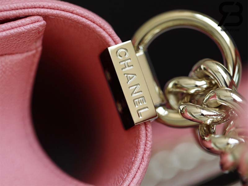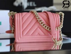 Túi Chanel Boy Small Màu Hồng Chevron Da Caviar Khóa Vàng Best Quality