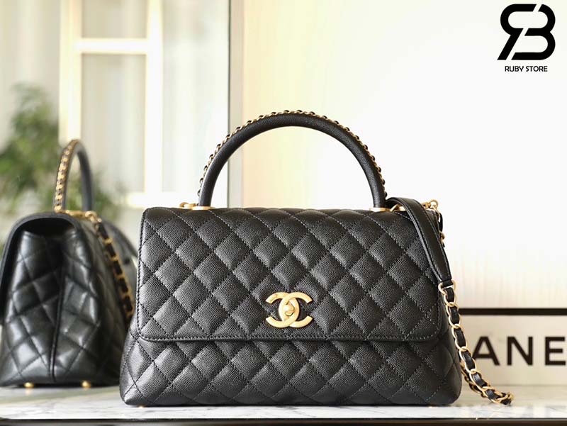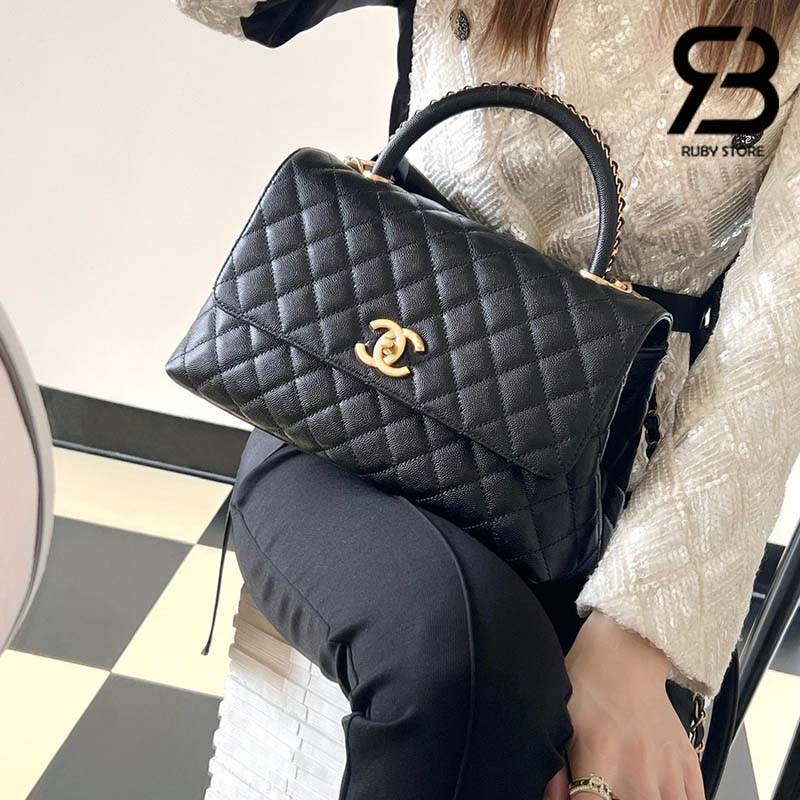 Túi Chanel Medium Coco Chain Top Handle Black Đen Da Caviar 29CM Best Quality