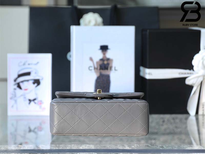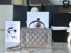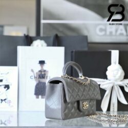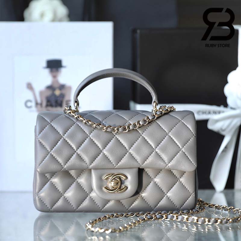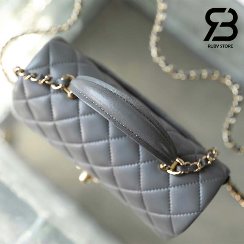 Túi Chanel Mini Flap Bag With Top Handle Màu Xám Lamskin Khóa Vàng 20CM Best Quality