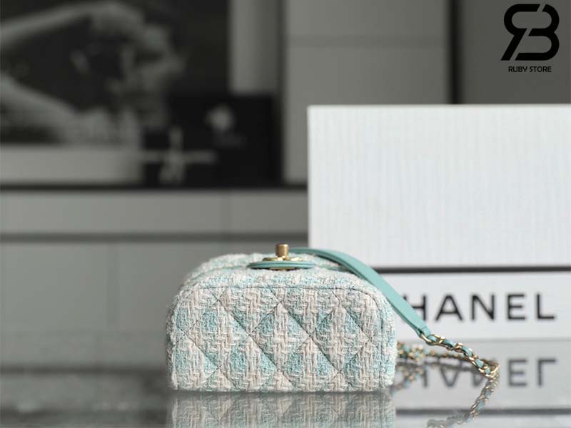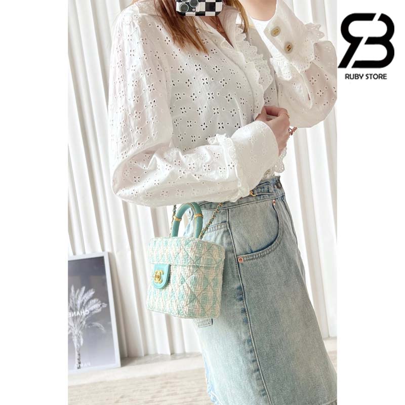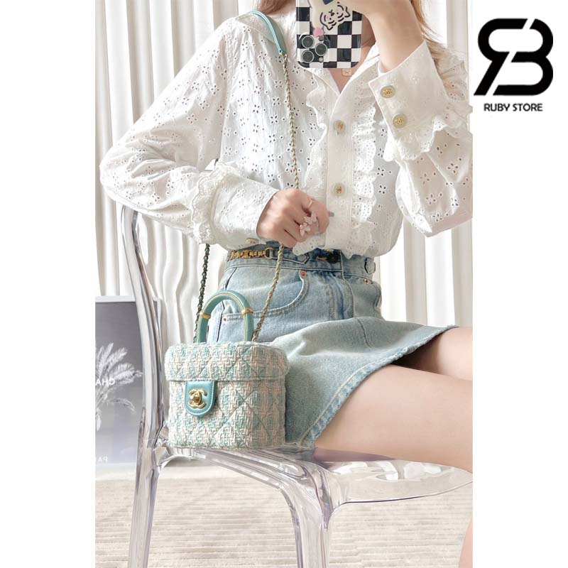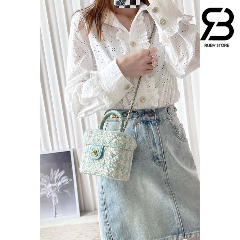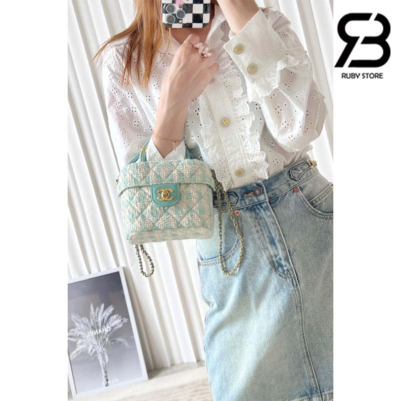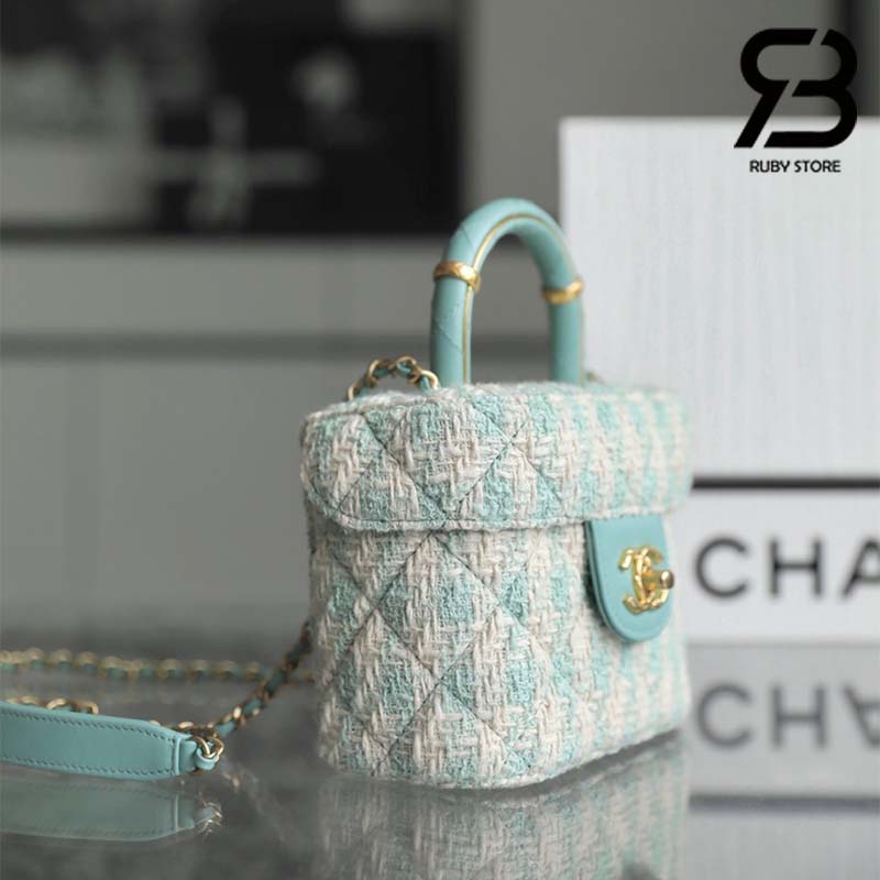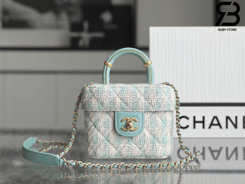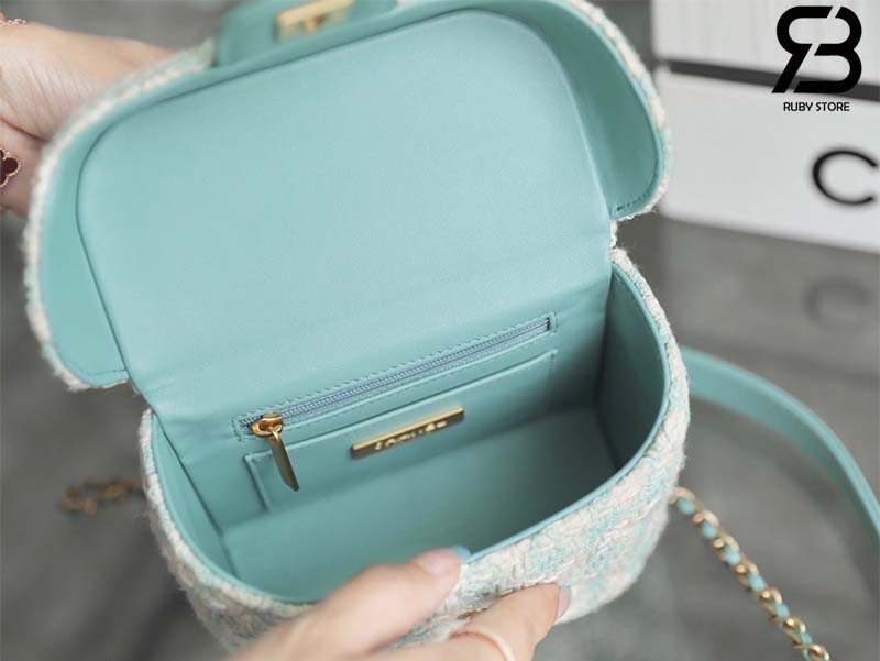 Túi Chanel Small Vanity Case Blue Tweed Lambskin 12CM Best Quality
