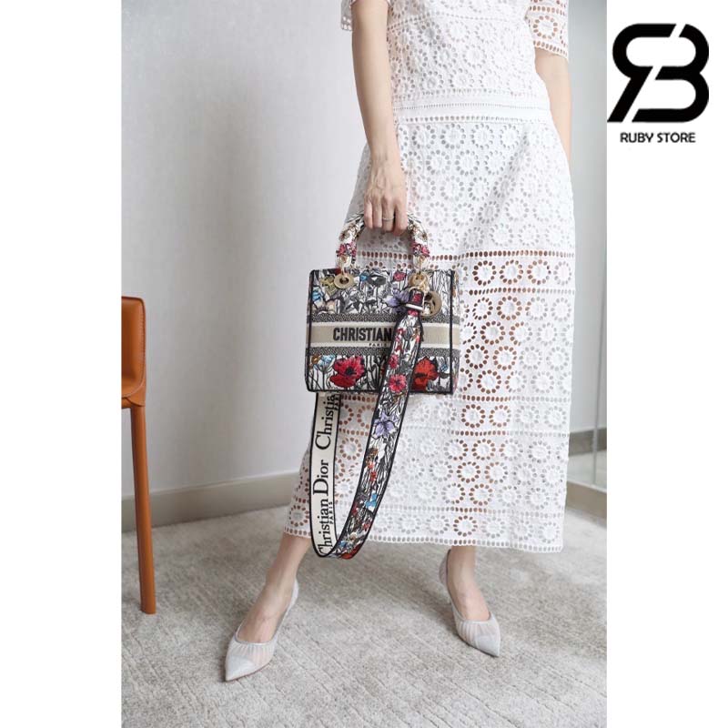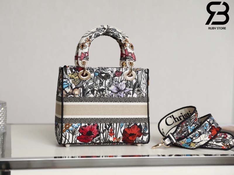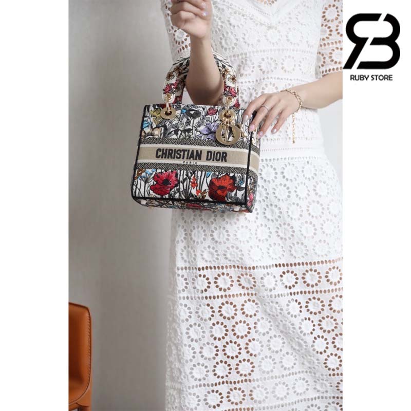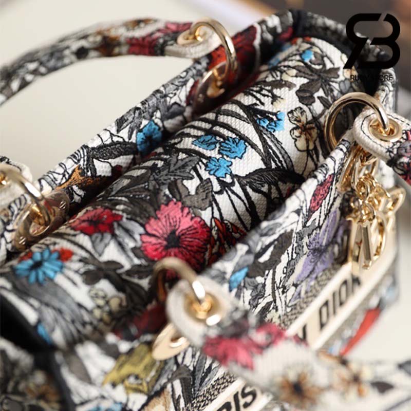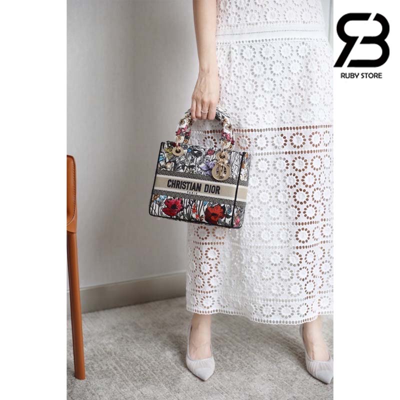 Túi Dior Medium Lady D-Lite Bag Multicolor Mille Fleurs Embroidery Best Quality