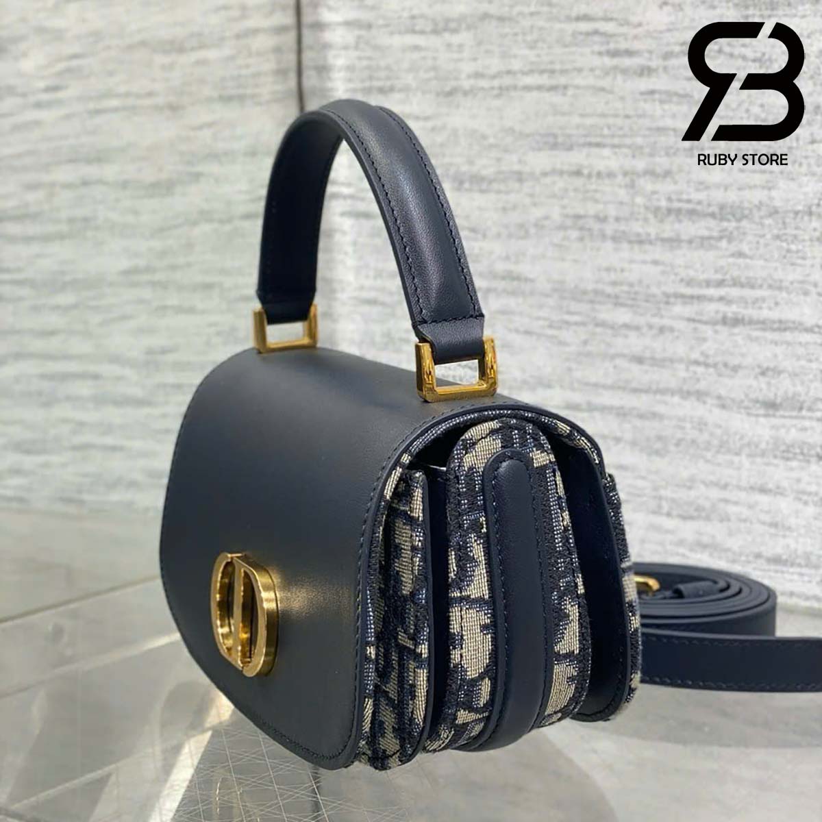 Túi Dior Small 30 Montaigne Avenue Top Handle Bag Blue Oblique Jacquard and Calfskin Best Da Nhập