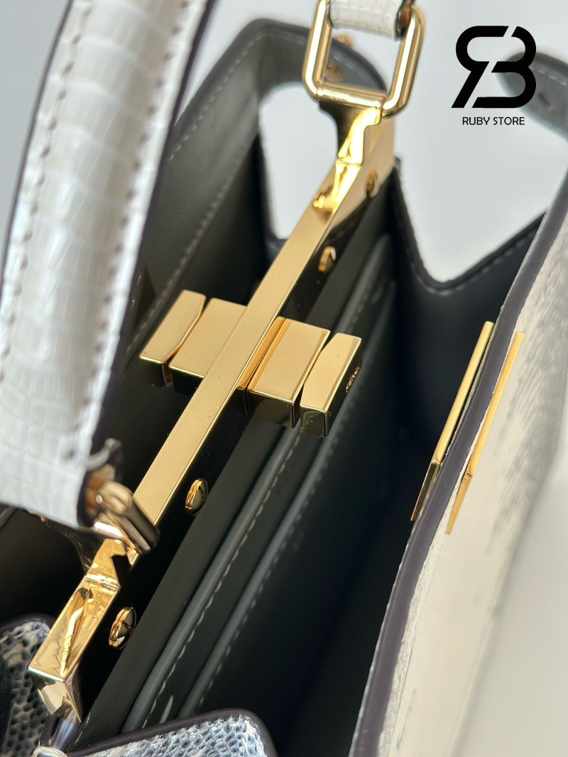 Với chất liệu da Lizard cao cấp, chiếc túi không chỉ mang lại vẻ đẹp sang trọng mà còn đảm bảo độ bền và độ nhẹ nhàng khi sử dụng. Thiết kế nhỏ gọn nhưng vẫn đủ sức chứa các vật dụng cần thiết, phù hợp với nhiều dịp khác nhau, từ dạo phố đến tiệc tùng.