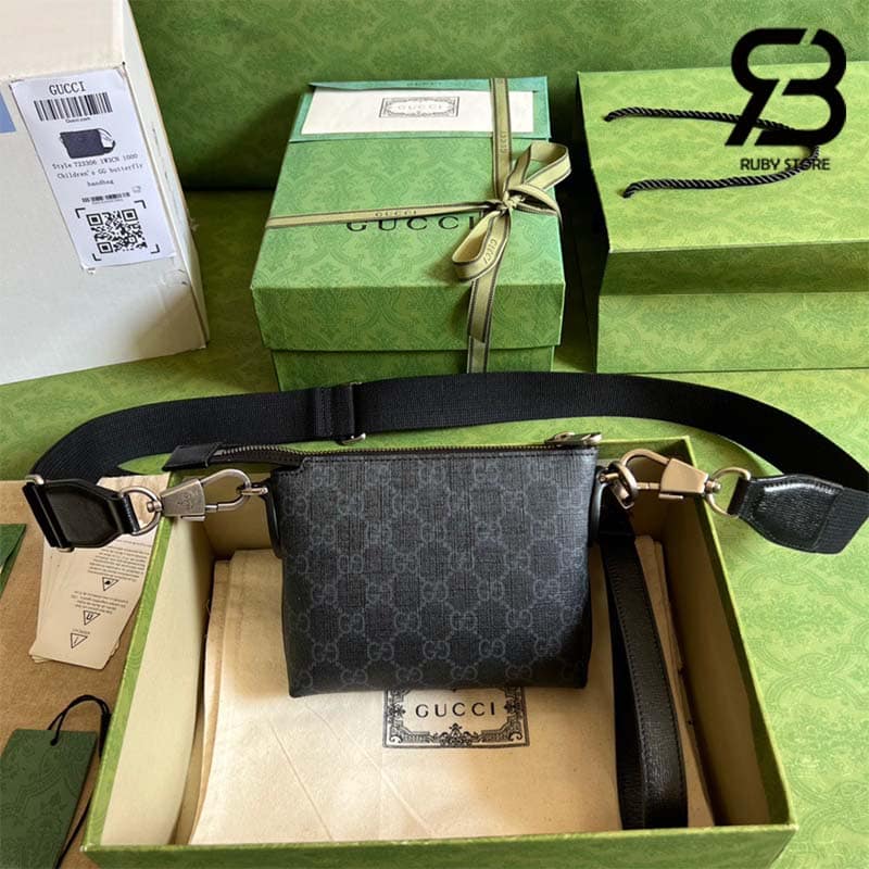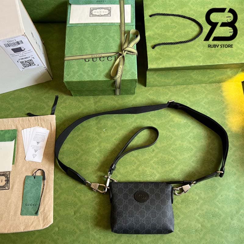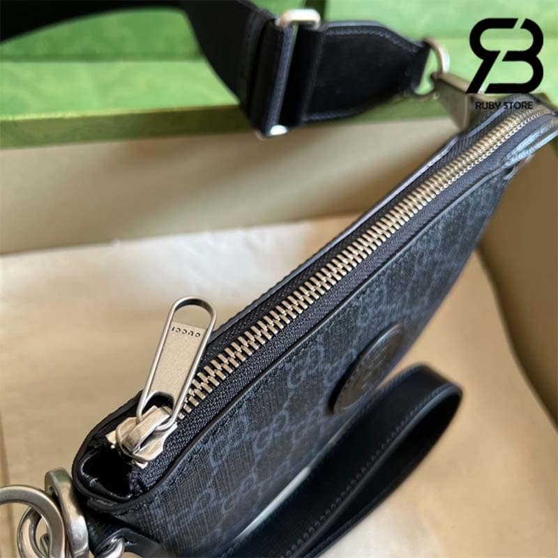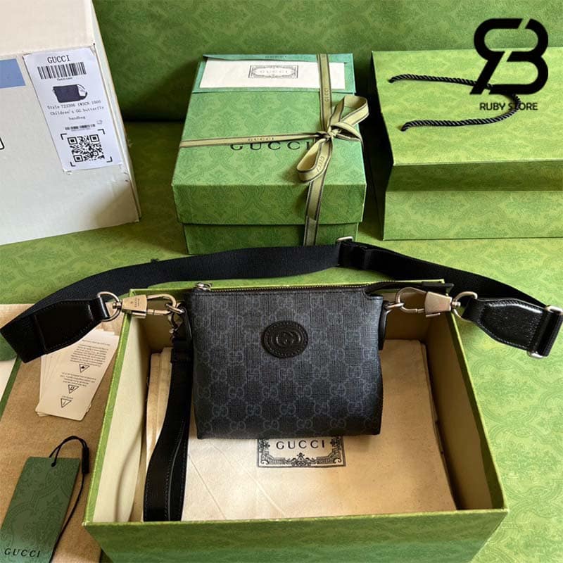 Túi Gucci Messenger Bag With Interlocking G Đen Xám GG Supreme Best Quality