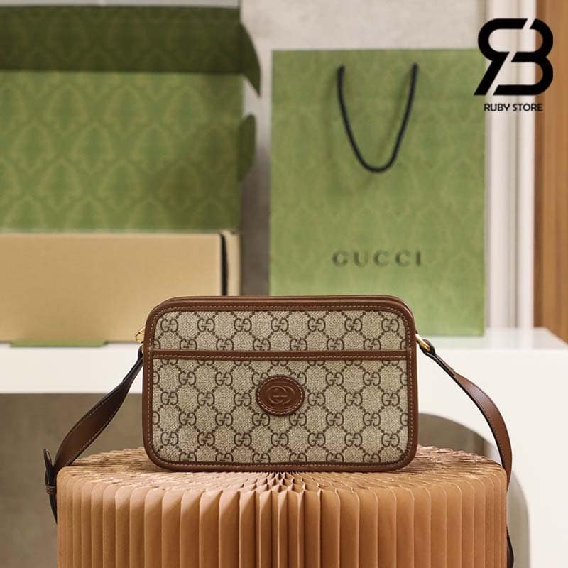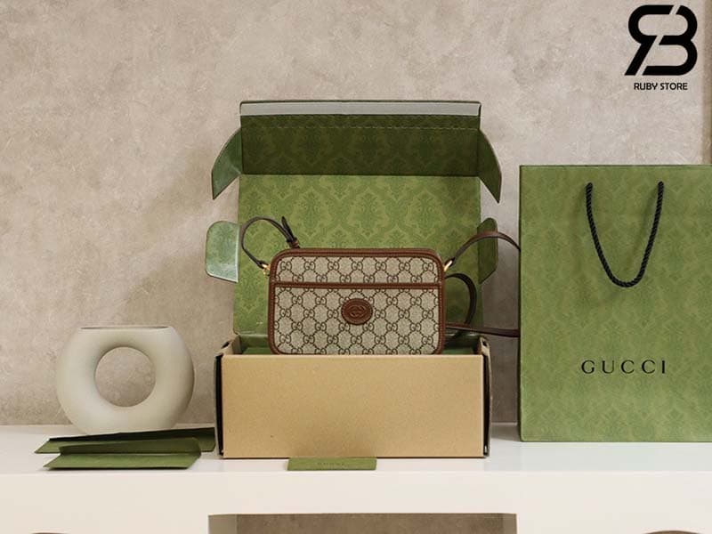Túi Gucci Mini Bag With Interlocking G GG Supreme Nâu Best Quality