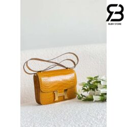 Túi Hermes Constance Mini 18 Vàng Jaune Ambre Shiny Alligator GHW Khâu Tay Best Quality