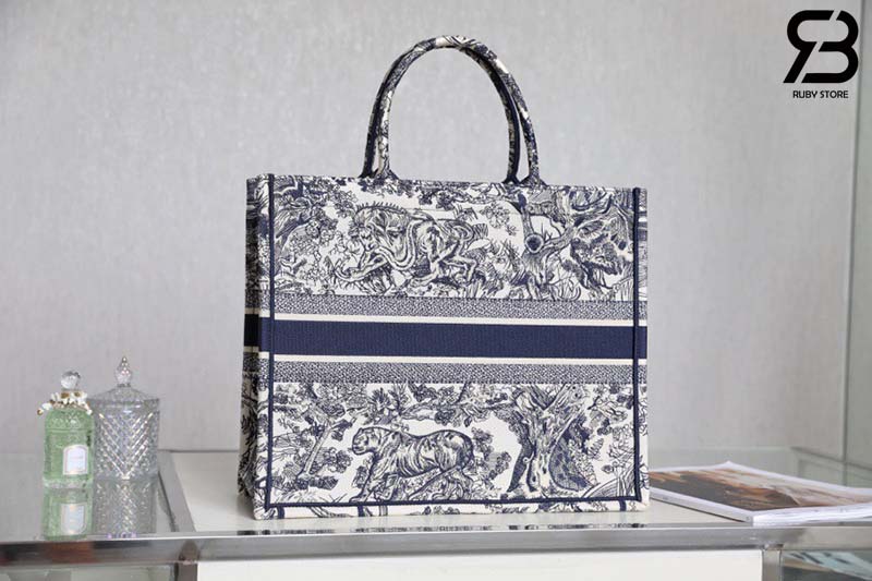 Túi Large Dior Book Tote Tiger Blue Xanh Dương 42cm Best Quality