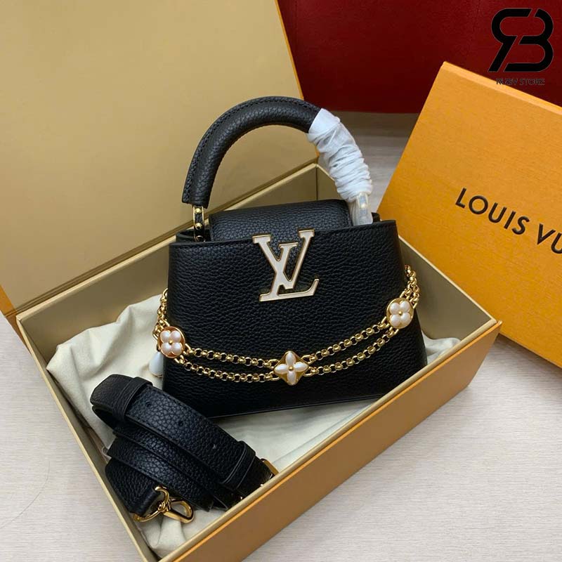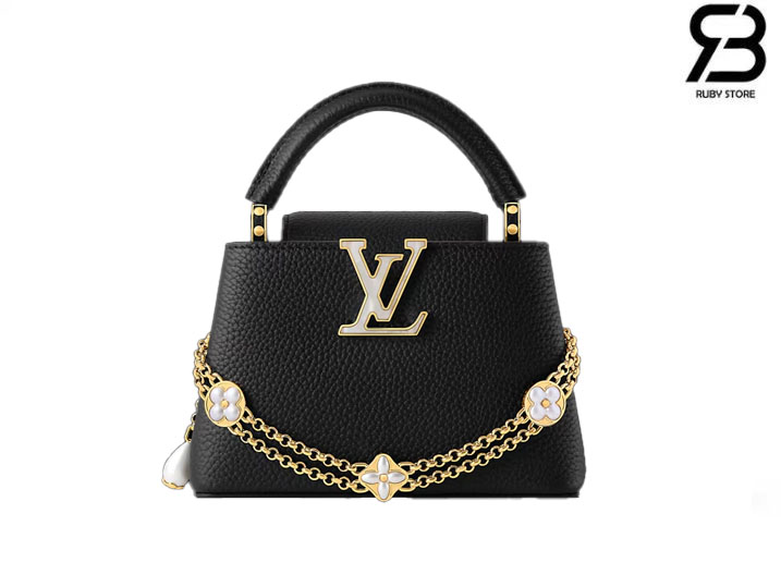 Túi LV Capucines Mini Daydream Màu Đen Dây Xích Hình Hoa 21CM Best Quality
