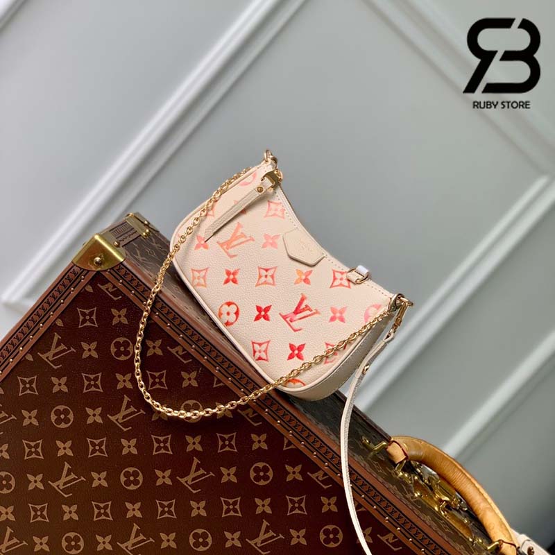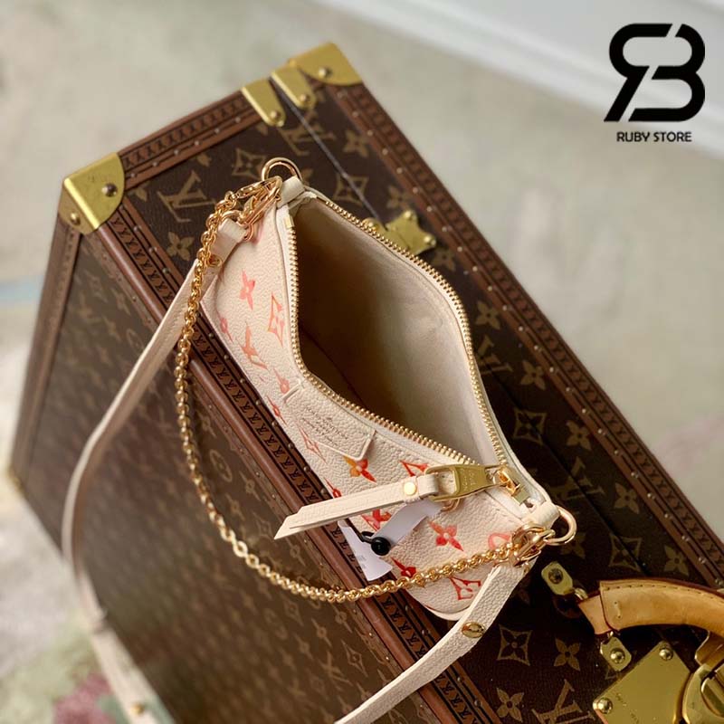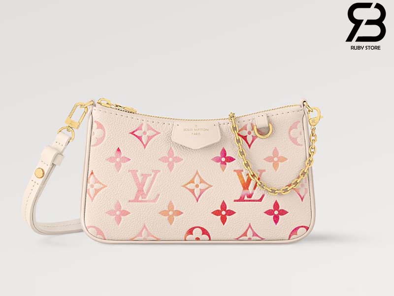 Bộ sưu tập Sunrise Aquarelle ra mắt phiên bản mới của túi Easy Pouch On Strap. Chất liệu da Monogram Empreinte được in kỹ thuật số trong gam màu cam và hồng tạo ra hiệu ứng chuyển màu tinh tế tựa như bức tranh được vẽ bằng màu nước. Không gian bên trong túi đủ rộng để đựng các món đồ thiết yếu hằng ngày. Ngoài dây xích rời, túi còn có dây đeo cũng dễ tháo rời và điều chỉnh độ dài để đeo trên vai hoặc đeo chéo.