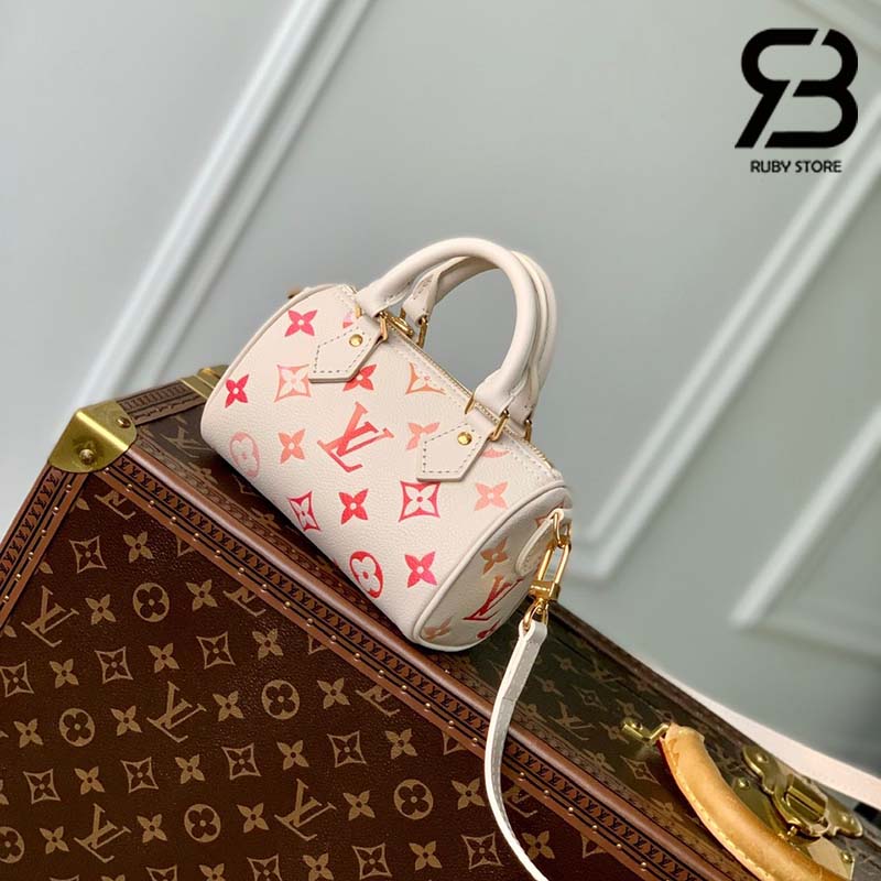 Tham khảo ảnh mẫu túi LV Nano Speedy Sunrise Aquarelle Monogram Empreinte 16CM Best Pháp