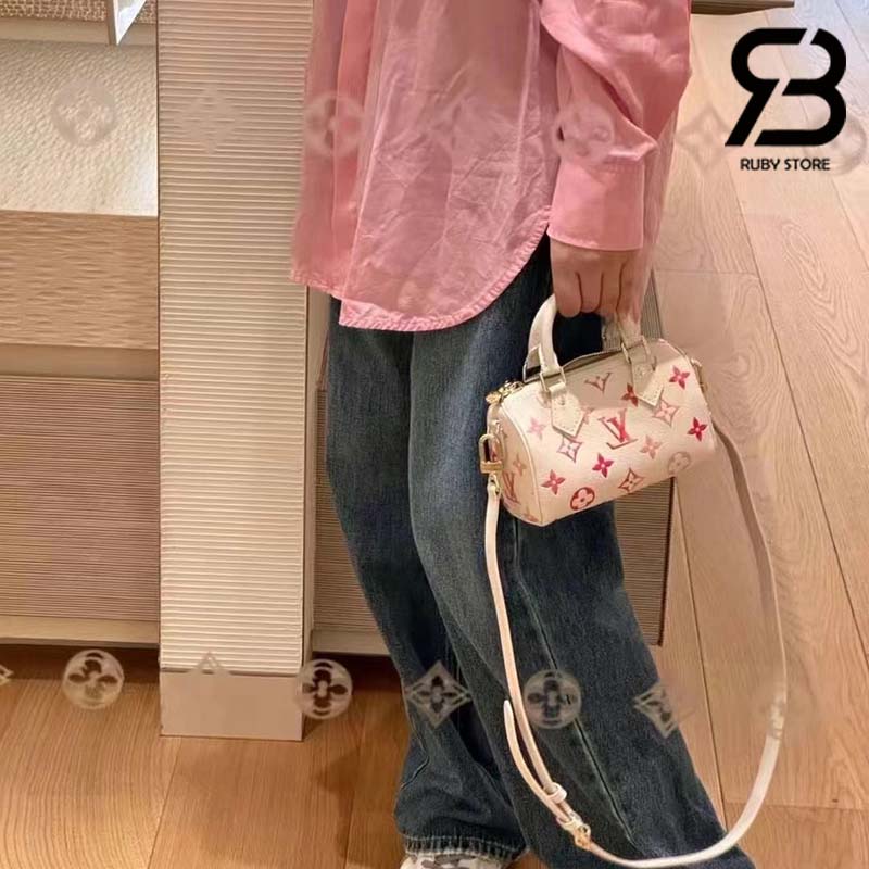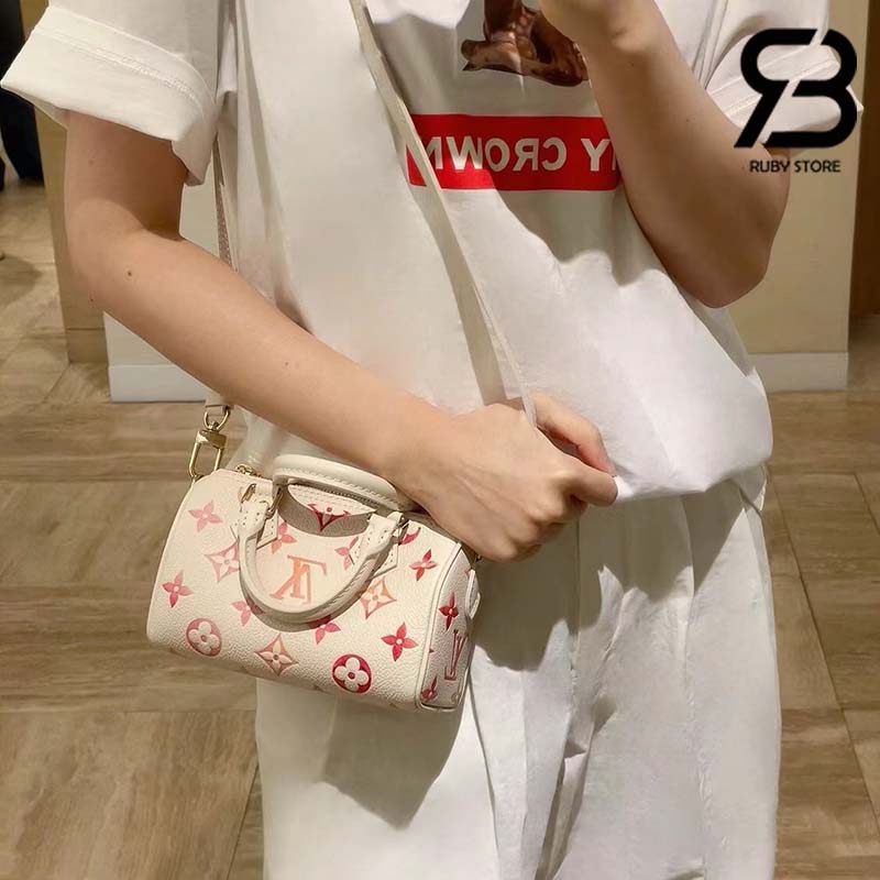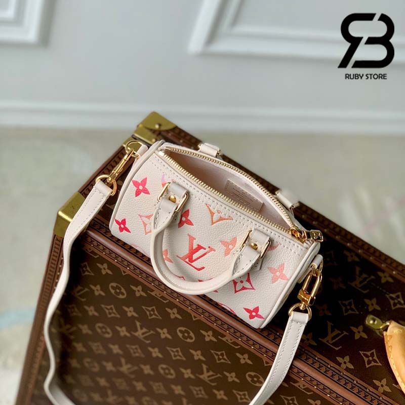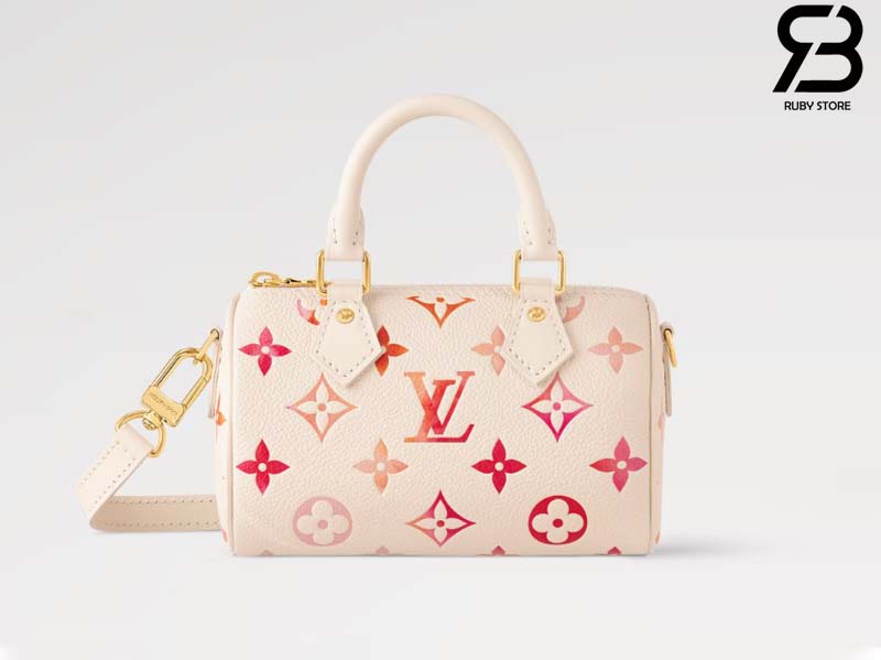 Thuộc bộ sưu tập Sunrise Aquarelle, túi Nano Speedy khoác lên diện mạo thời thượng với phiên bản mới của chất liệu da Monogram Empreinte. Lớp họa tiết trên bề mặt được in kỹ thuật số để tạo ra những gam màu trong trẻo tựa ánh nắng mai với hiệu ứng màu nước tinh tế. Là phiên bản cỡ nhỏ của túi Speedy kinh điển, túi Nano Speedy sở hữu 2 quai xách cùng với dây đeo trên vai dễ tháo rời và điều chỉnh độ dài giúp mang đến cho túi nhiều lựa chọn biến hóa linh hoạt.