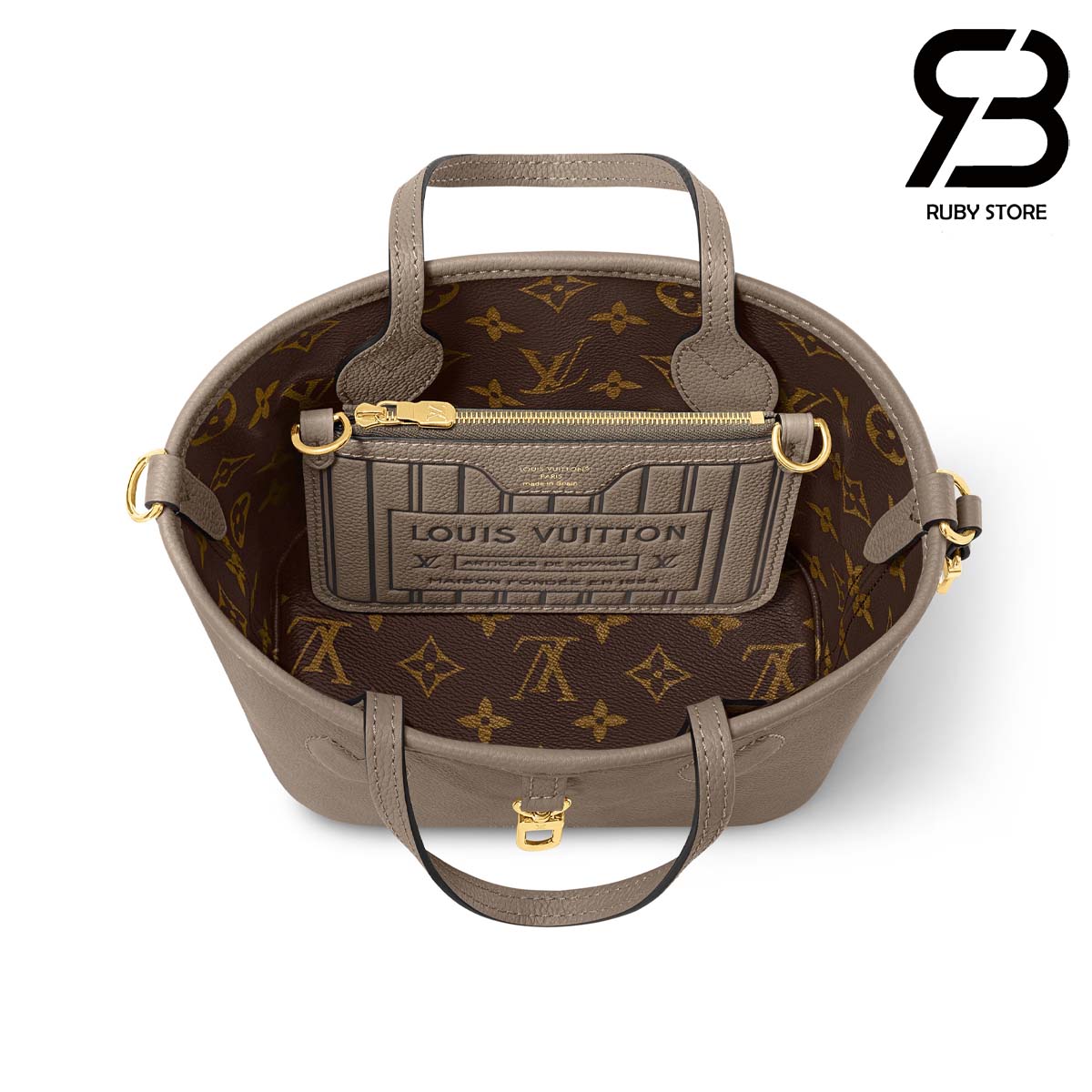 Túi LV Neverfull BB In Side Out Dark Fango Monogram Xám Đậm 26.5CM Best Quality