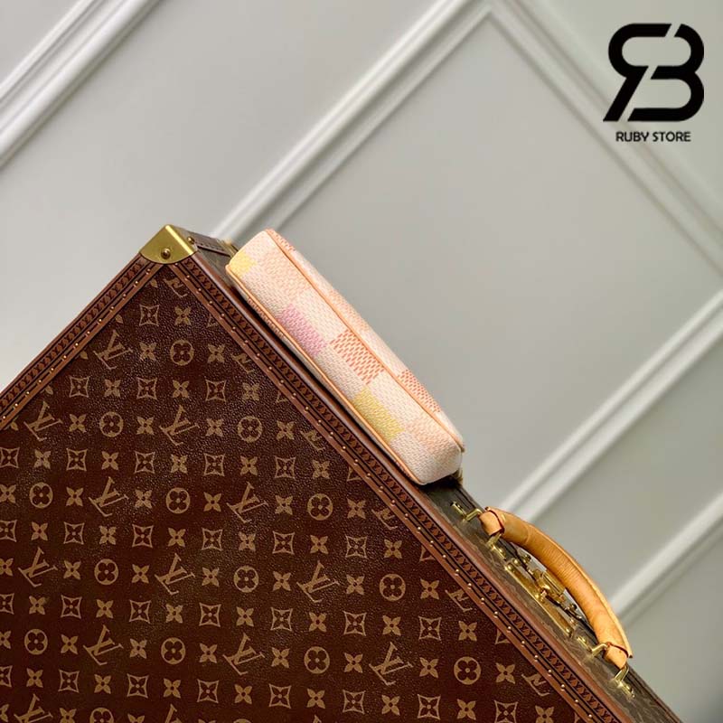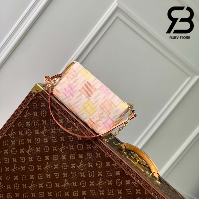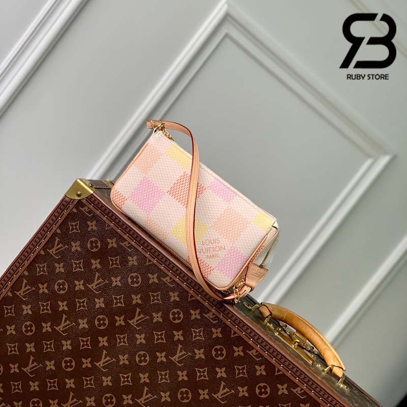 Thuộc bộ sưu tập Damierlicious, phiên bản mới của túi Pochette Accessoires được làm từ chất liệu Damier Canvas. Khoác lên gam màu Pastel trang nhã, túi được tô điểm với phần viền bằng da tự nhiên đặc trưng của Louis Vuitton. Thiết kế thanh lịch sở hữu 1 ngăn lớn, 3 ngăn phụ và 2 khe đựng thẻ. Có thể mang túi theo nhiều kiểu khác nhau nhờ dây đeo bằng da dễ tháo rời và dây xích màu vàng ánh kím.
