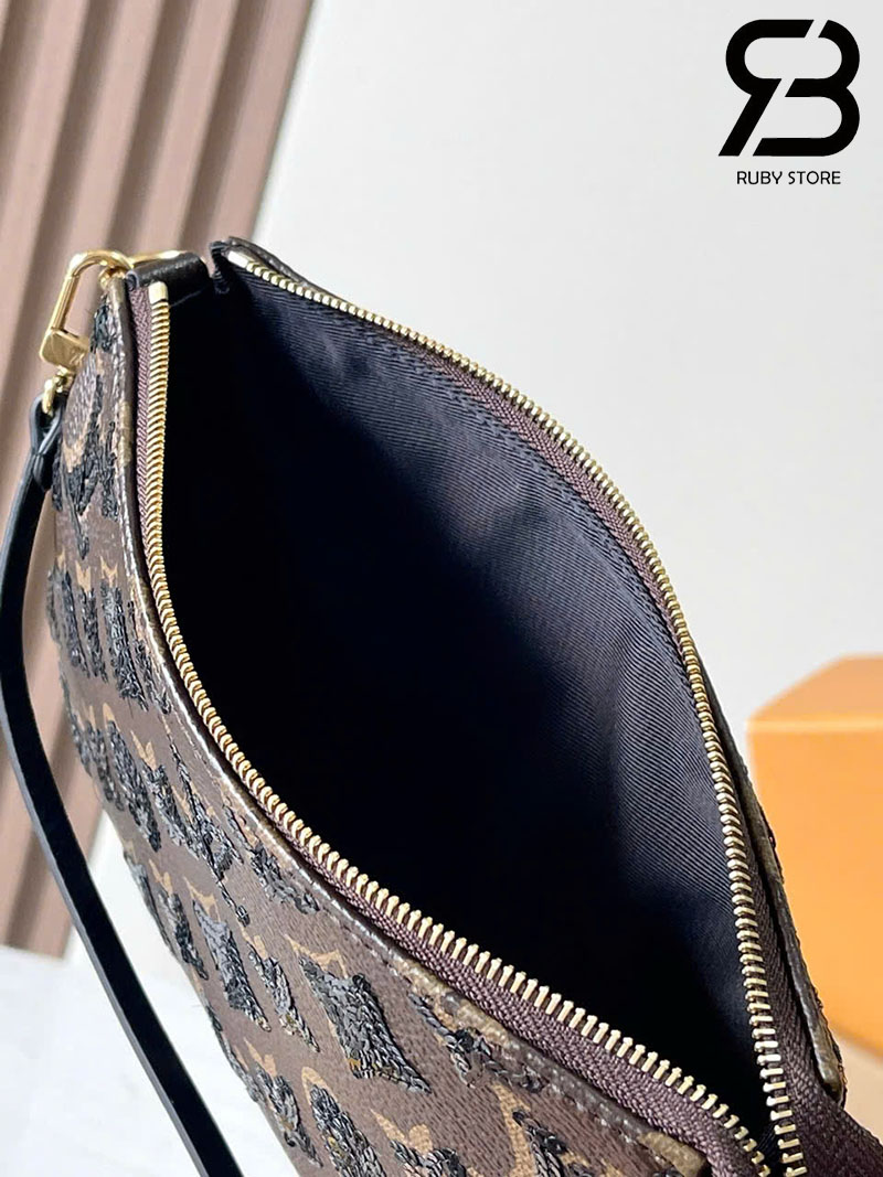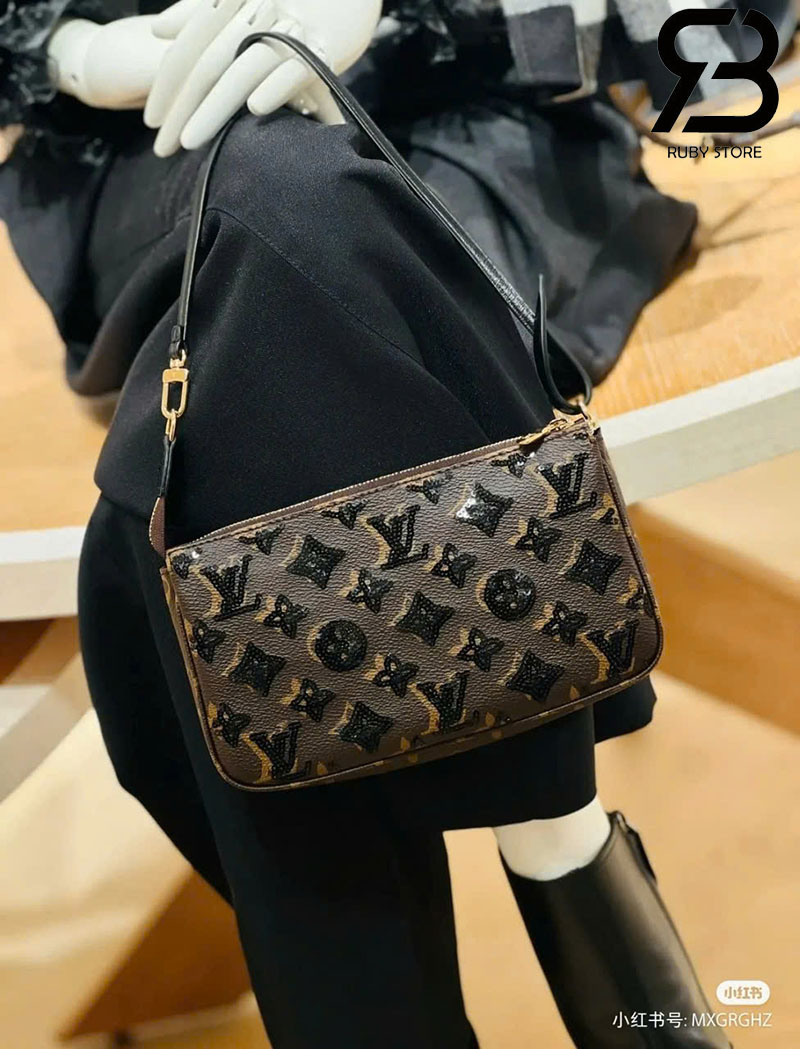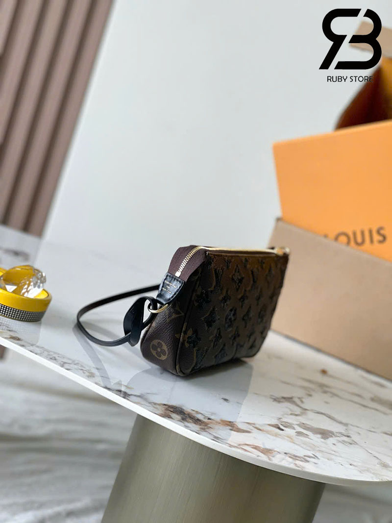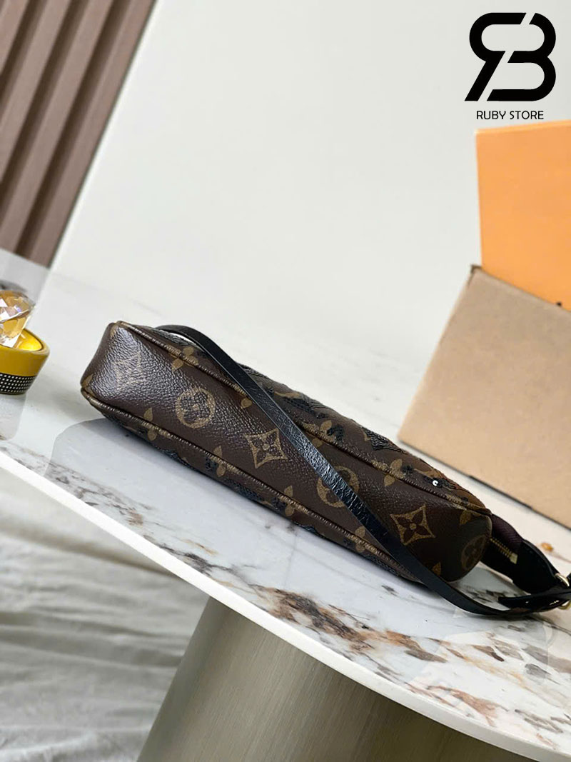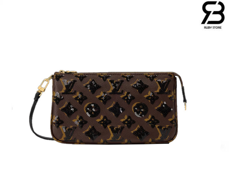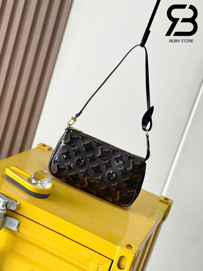 Túi LV Pochette Accessoires Monogram Đính Kim Sa Nâu Best Quality