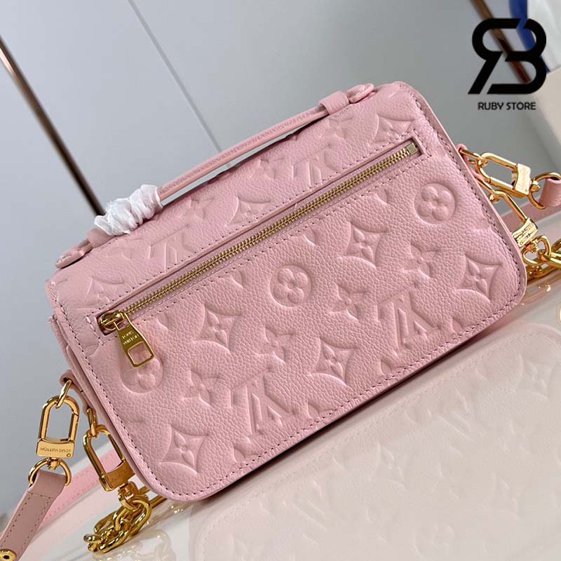 Túi Pochette Metis trong phom dáng East-West thời thượng được chế tác từ da Monogram Empreinte màu Pastel thanh lịch. Các chi tiết kim loại màu vàng ánh kim nhạt, bao gồm khóa S-lock trứ danh và dây xích ngắn dễ tháo rời, giúp túi trông nổi bật hơn. Sản phẩm còn mang tính ứng dụng cao nhờ không gian bên trong được thiết kế tinh tế cùng với dây đeo dễ điều chỉnh độ dài.