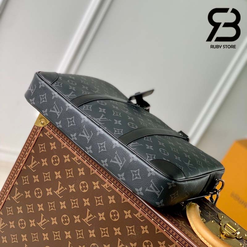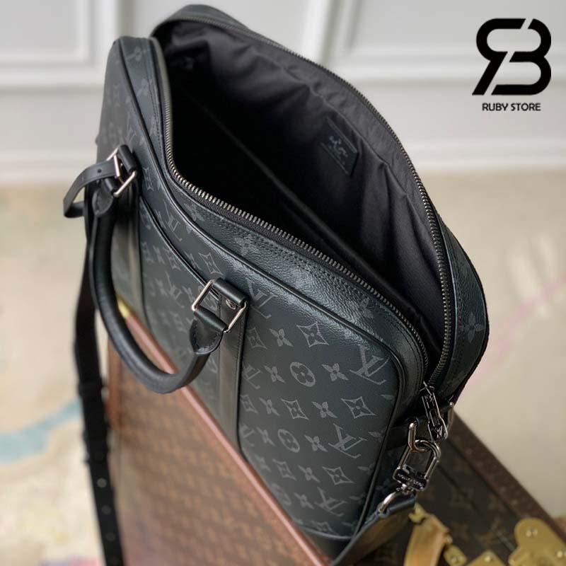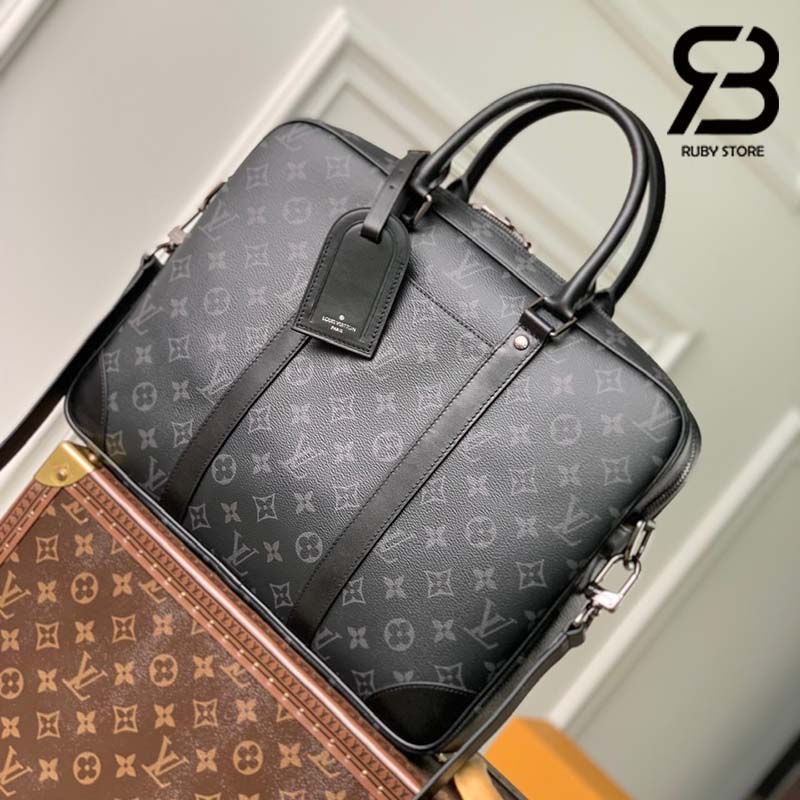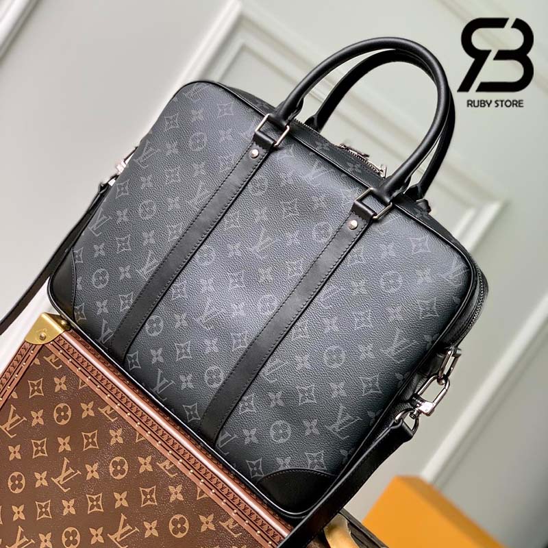 Chất liệu Monogram Eclipse Canvas màu đen xám mang đến nét đẹp tinh tế cho chiếc cặp xách tay Porte-Documents Voyage PM. Quai xách, các dây trang trí và góc túi bằng da màu đen, tạo nên tổng thể thanh lịch và sang trọng. Với hai quai xách, dây đeo có thể tháo rời và điều chỉnh độ dài, chiếc cặp xách tay này có thể đeo theo nhiều kiểu khác nhau.