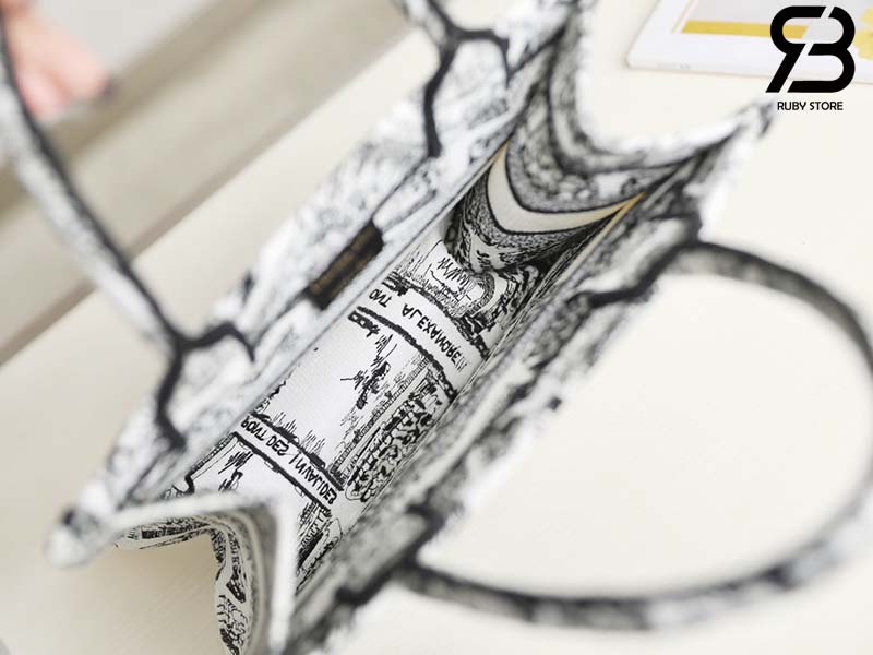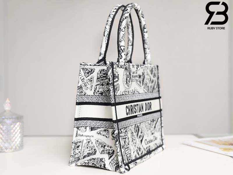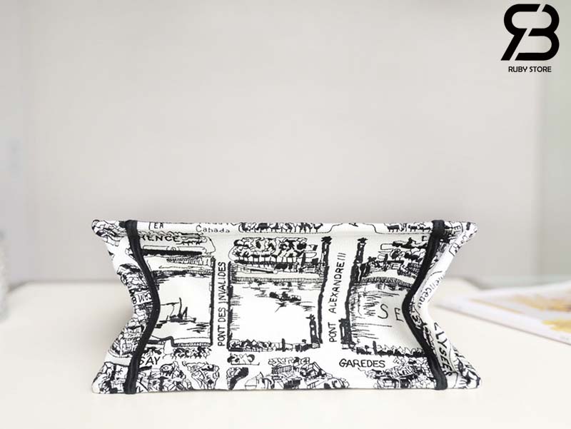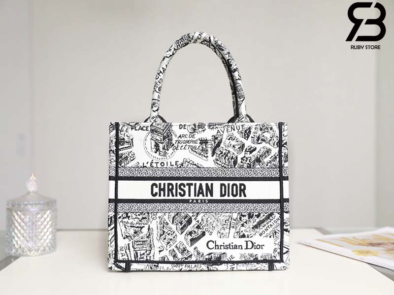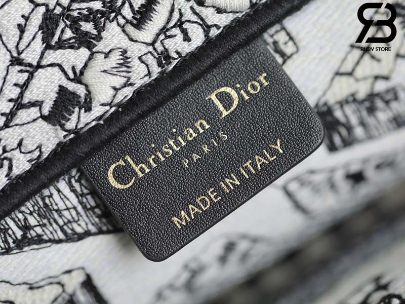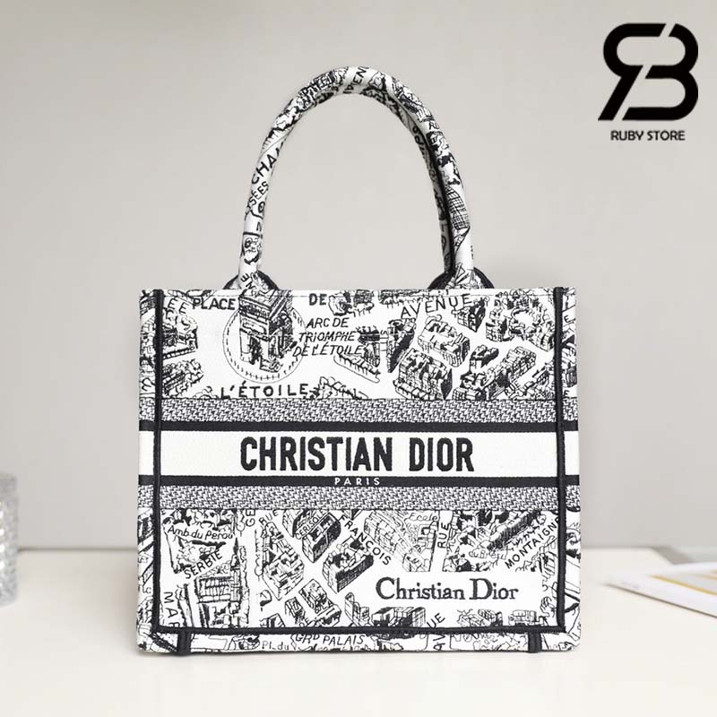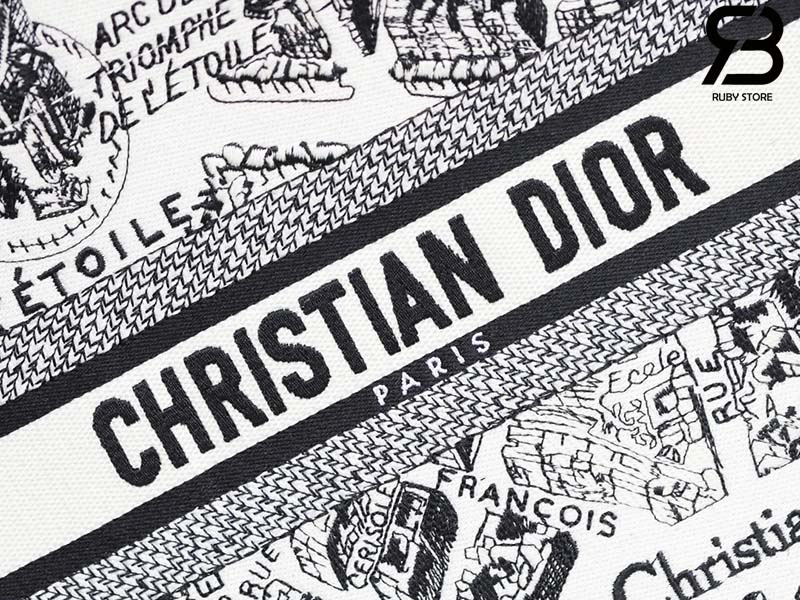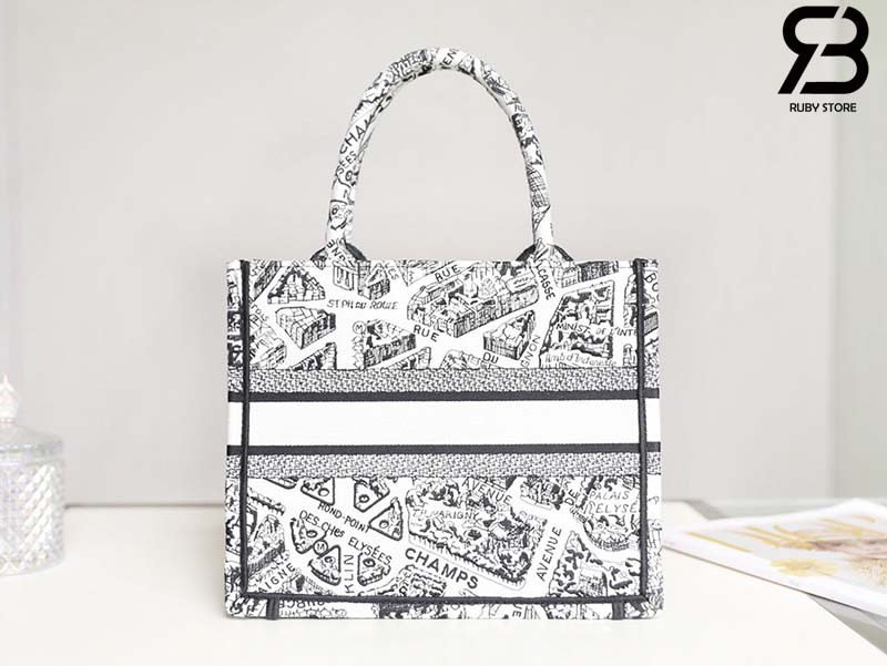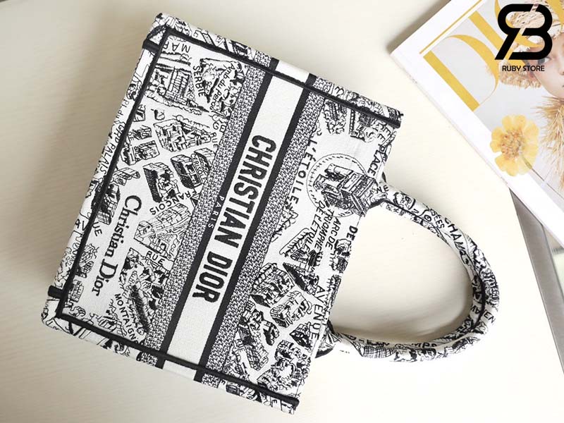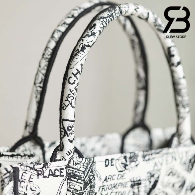 Túi Small Dior Book Tote Plan De Paris Embroidery Trắng Đen 26CM Best Quality